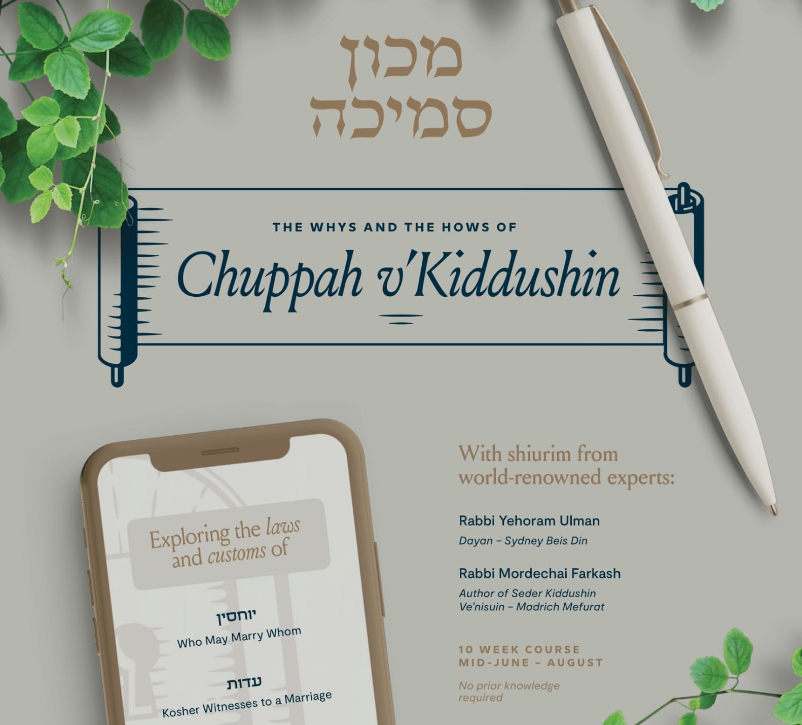 Machon Smicha is launching an exciting new summer course – a primer on the laws and customs of Chuppah v’Kiddushin. The goal of the course is to study the halachos directly from the Shulchan Aruch and other sources, and then to apply that to the practical laws and customs of officiating at a wedding.