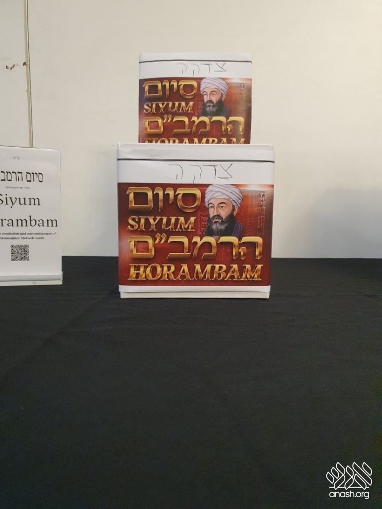 The event marked a triple siyum for the thousands worldwide completing the study of the entire corpus of Halachos of Torah Shebaal Peh through the works of the Rambam. Participants celebrated the completion of all three study tracks established under the Lubavitcher Rebbe’s Rambam learning initiative: the three perokim a day cycle, the one perek a day cycle, and the daily Sefer HaMitzvos cycle.
