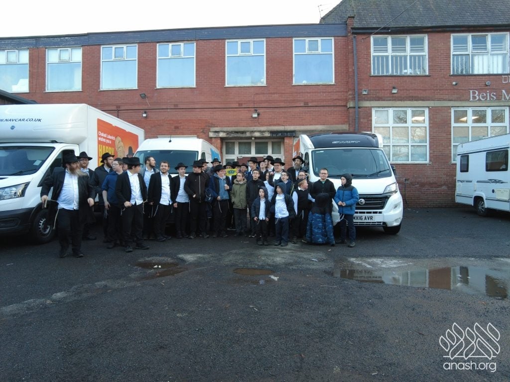 Arranging a massive drive for Mivtzoim as a present for the Rebbe’s Birthday, the Bochurim in Manchester rented eight Mitzvah Tanks for key locations around town, where they put on tefillin with many Yidden and distributed hundreds of boxes of matzah to raise Pesach awareness across the city.