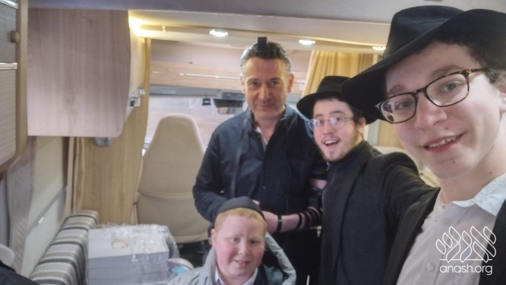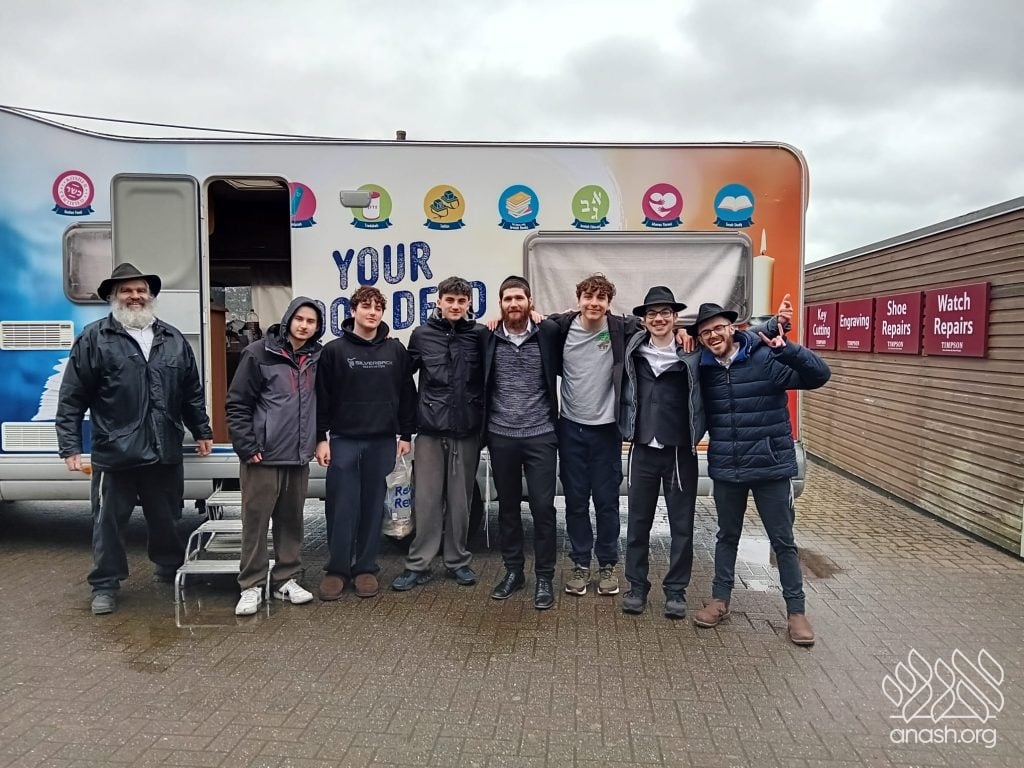 For the second year running, one unique part was the Cteen Tank – a group of boys from Cteen who, together with their chaperones from the Cteen NY Shabbaton, spent the entire afternoon doing mivtzoim on a mitzvah outside the Tesco Supermarket. They put on tefillin with Yidden and distributed 135 boxes of Matzos.