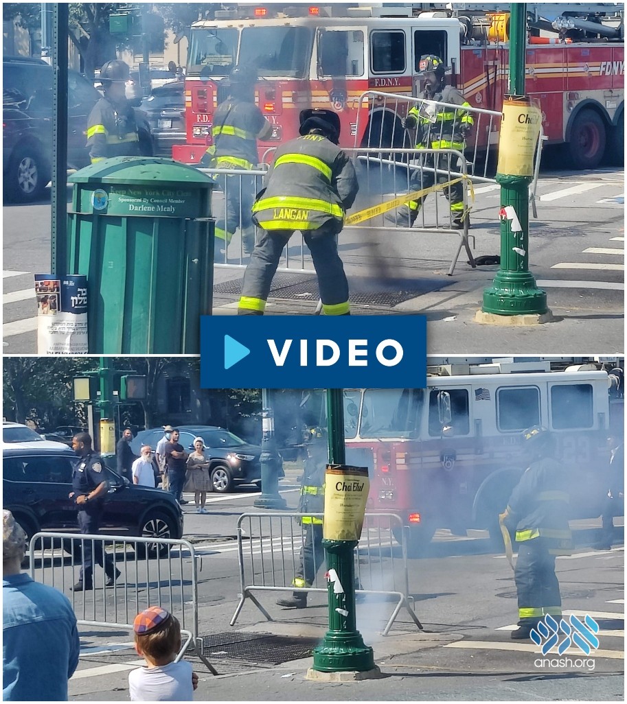 Firefighters rushed to the corner of Eastern Parkway and Kingston after flames and smoke began shooting out of a manhole on the Parkway, causing a brief commotion near 770. After a short while, the firefighters brought the fire under control.