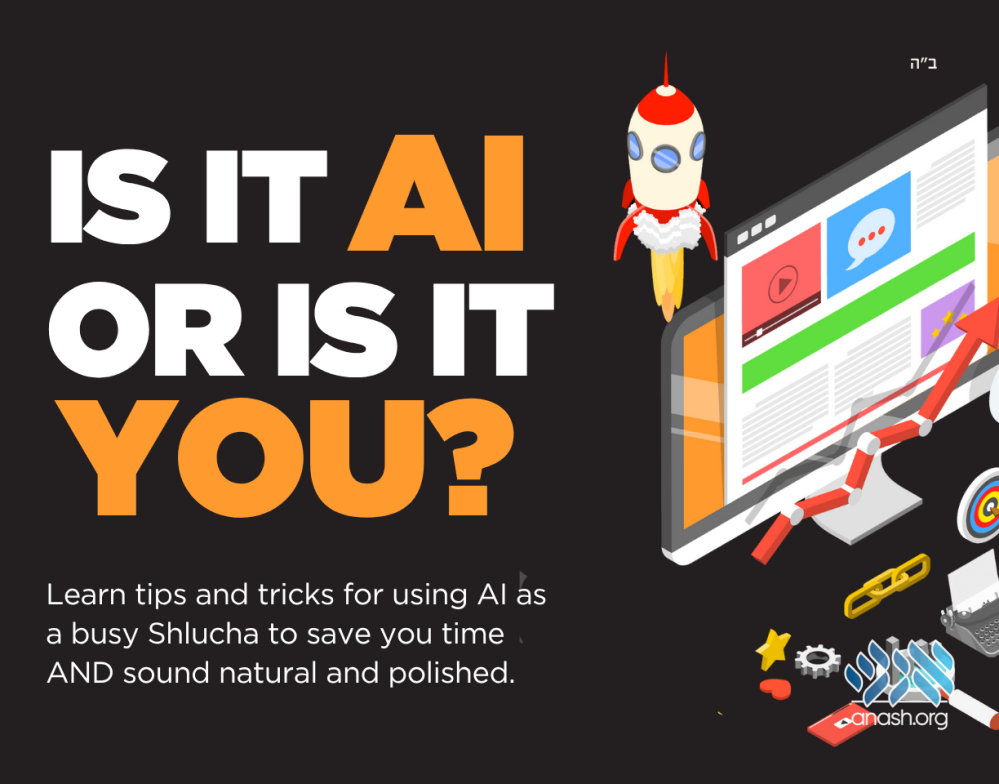 On Wednesday, 5 Menachem Av (July 30th) at 11:00 AM, Merkos 302 is hosting a live virtual workshop titled “Is It AI or Is It You?”, led by professional copywriter Alte Raskin.