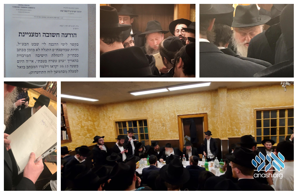 The farbrengen began with a special surprise. In 5739, the Rebbe wrote a letter to “the attendees of the annual dinner of the network of yeshivos Tomchei Tmimim Lubavitch.” The letter, delivered at the time written, went missing a few years later.
