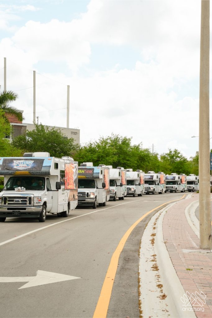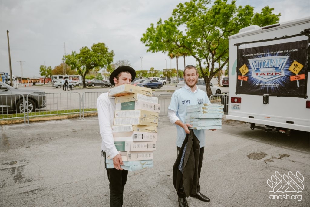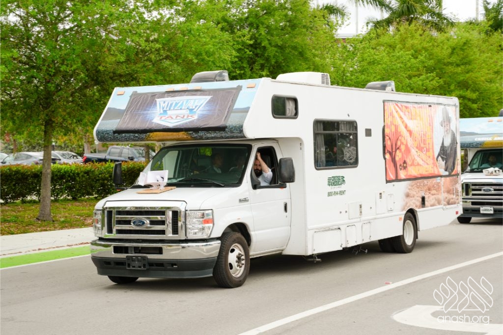 Defying stormy forecasts, a record-breaking fleet of 23 Mitzvah Tanks launched from the Lubavitch Educational Center on Yud Alef Nissan, rolling through Greater Miami to distribute Shmurah Matzah, help men put on Tefillin, and proudly spread Jewish pride.