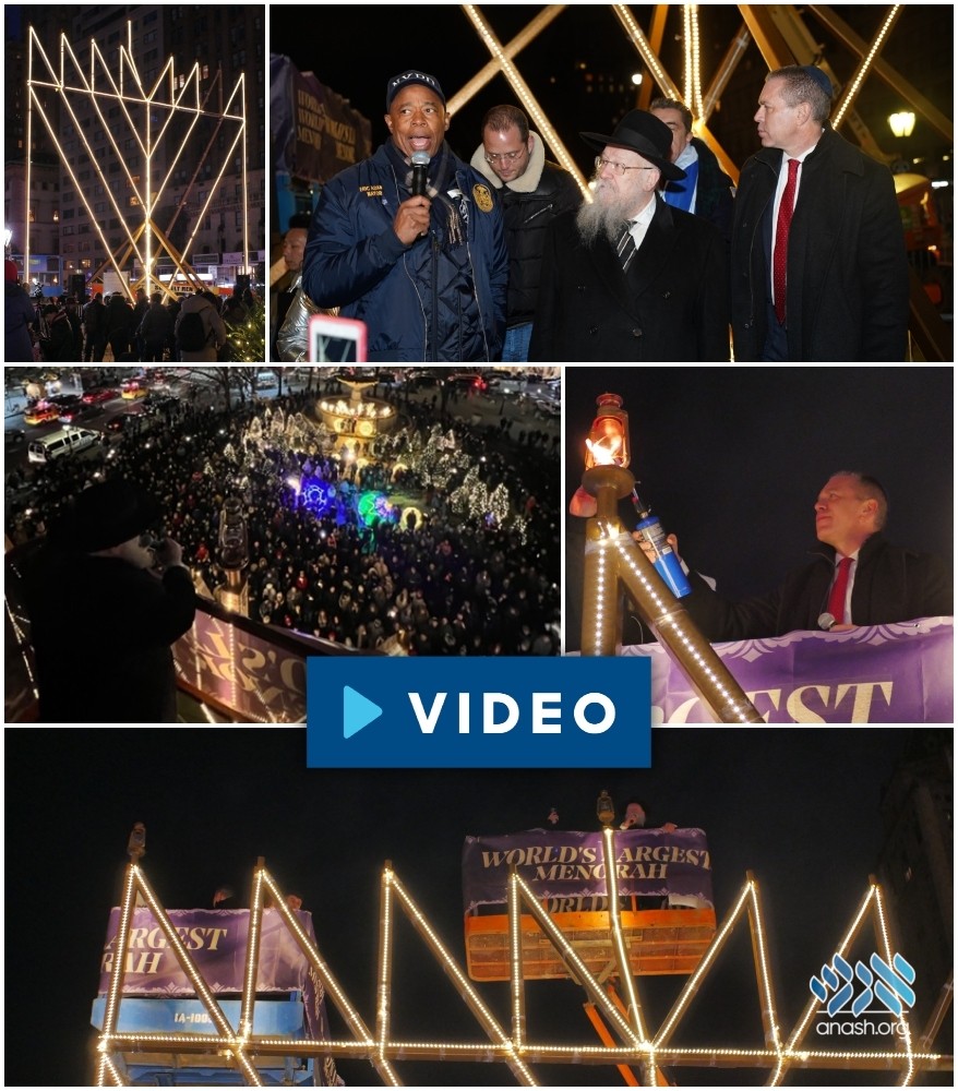 The world’s largest menorah, a New York City icon and one of the world’s premier public menorahs, was kindled at its annual home early on Thursday, Dec. 15, with NYC Mayor Eric Adams and Israel’s United Nations Ambassador Gilad Erdan joining the lighting.