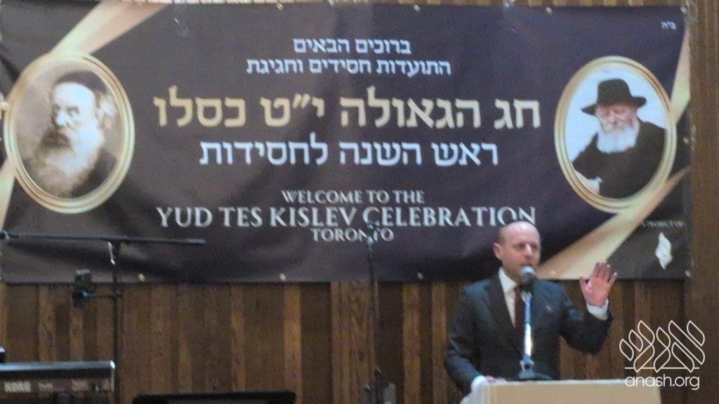 At a community farbrengen in Toronto, Rabbi Zalman Leib Markowitz urged participants to learn Chassidus to uncover the “little oil within” and shared how the Rebbe’s guidance helped him overcome a childhood stutter through learning Tanya.