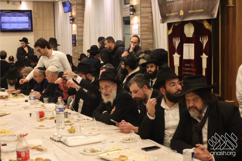 Marking the eleventh yahrtzeit of Rabbi Mulleh Azimov and the thirteenth yahrtzeit of his wife, Mrs. Bassie Azimov, who together transformed the landscape of French Jewry and inspired thousands to return to Yiddishkeit, shluchim and Anash gathered for a Melave Malka at the Chabad of Flanders, directed by Rabbi Daniel Gabay, for an inspiring farbrengen in honor of their lifelong shlichus.