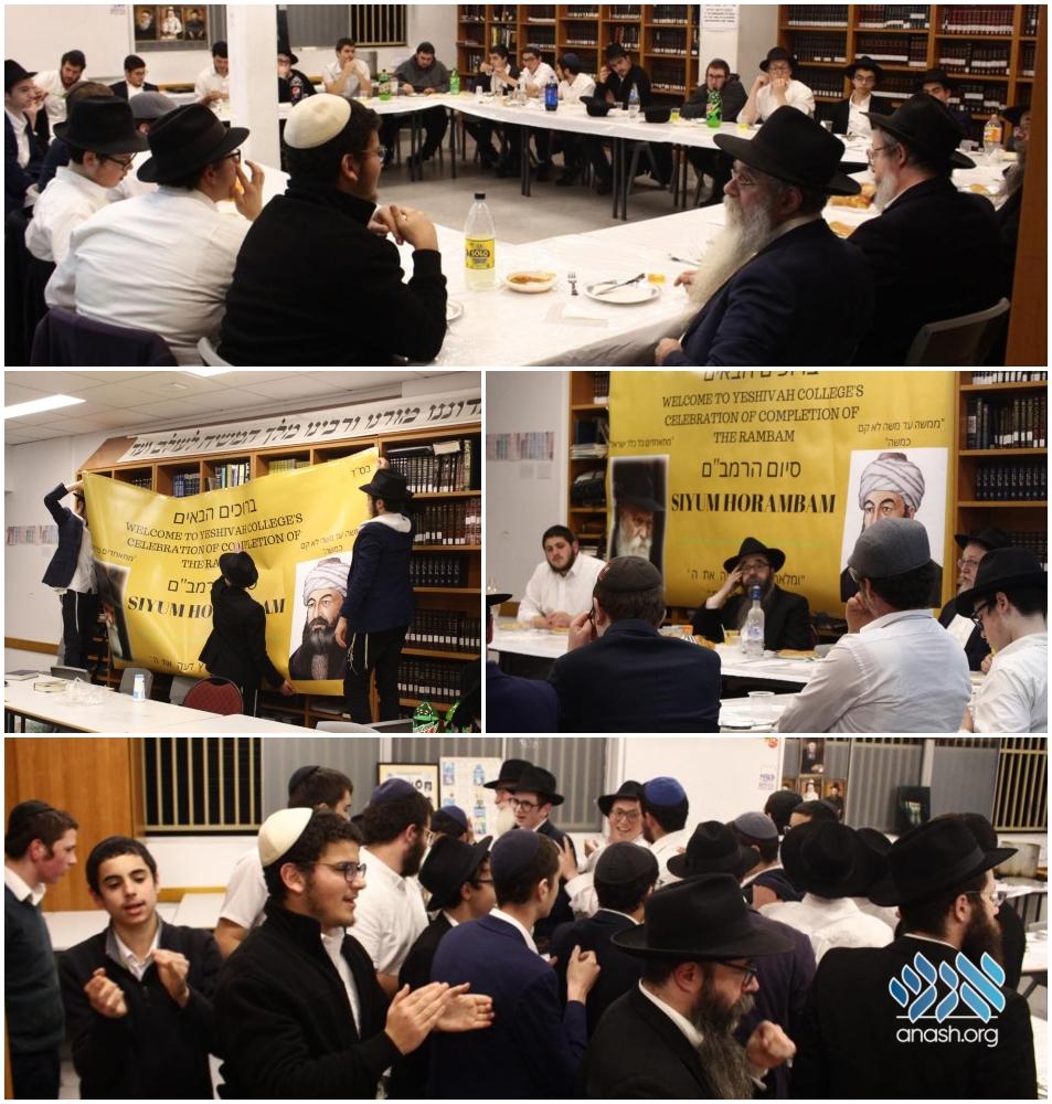 The seuda was held in the late afternoon like the old Lubavitch Lag B’Omer minhag. At the seudah, the Mashpia of Mesivta Rabbi Mendel Lipskier spoke. The Menahel of Mesivta, Rabbi Levi Morozov, spoke about his experience as a Shliach in Morocco at the time of the First Siyum Harambam, and Rabbi Leibel Raskin, a teacher at Mesivta, led the farbrengen.