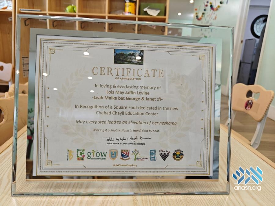 The mayor was presented with a BuildChabadChayil.org plaque representing a dedicated square foot in the new Chabad Chayil center currently under construction in Highland Lakes. Her name will also be on permanent display together with all others that dedicated square feet or any part of the building.
