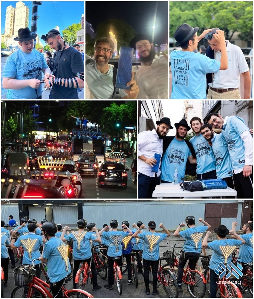 Bochurim learning in Yeshiva Gedola of Buenos Aires, Argentina, spread the message of Chanuka with multiple bicycle parades through the city’s streets. They wrapped over 800 Tefilin, and distributed 7000 Menorahs.