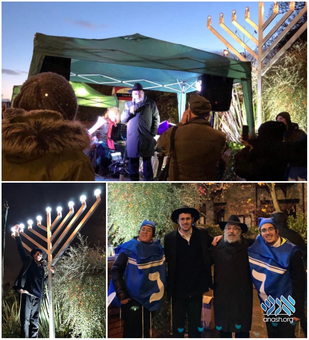 Despite the cold and rainy weather, over 150 people attended the second annual public Menorah lighting of the Leytonstone & Wanstead synagogue in east London, England, led by Rabbi Yitzchok Austin.