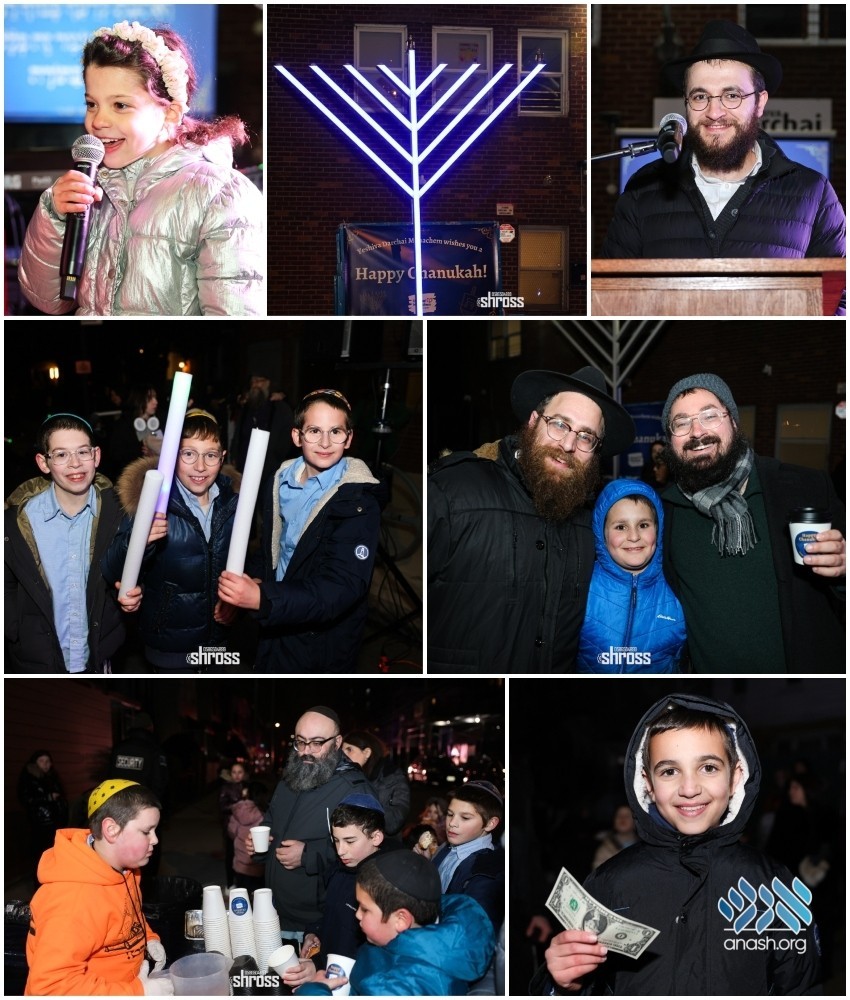 Students, families, staff, and friends joined the Darchei Menachem Yeshiva public Menorah lighting and Chanuka bash on Thursday night, the first night of Chanuka.
