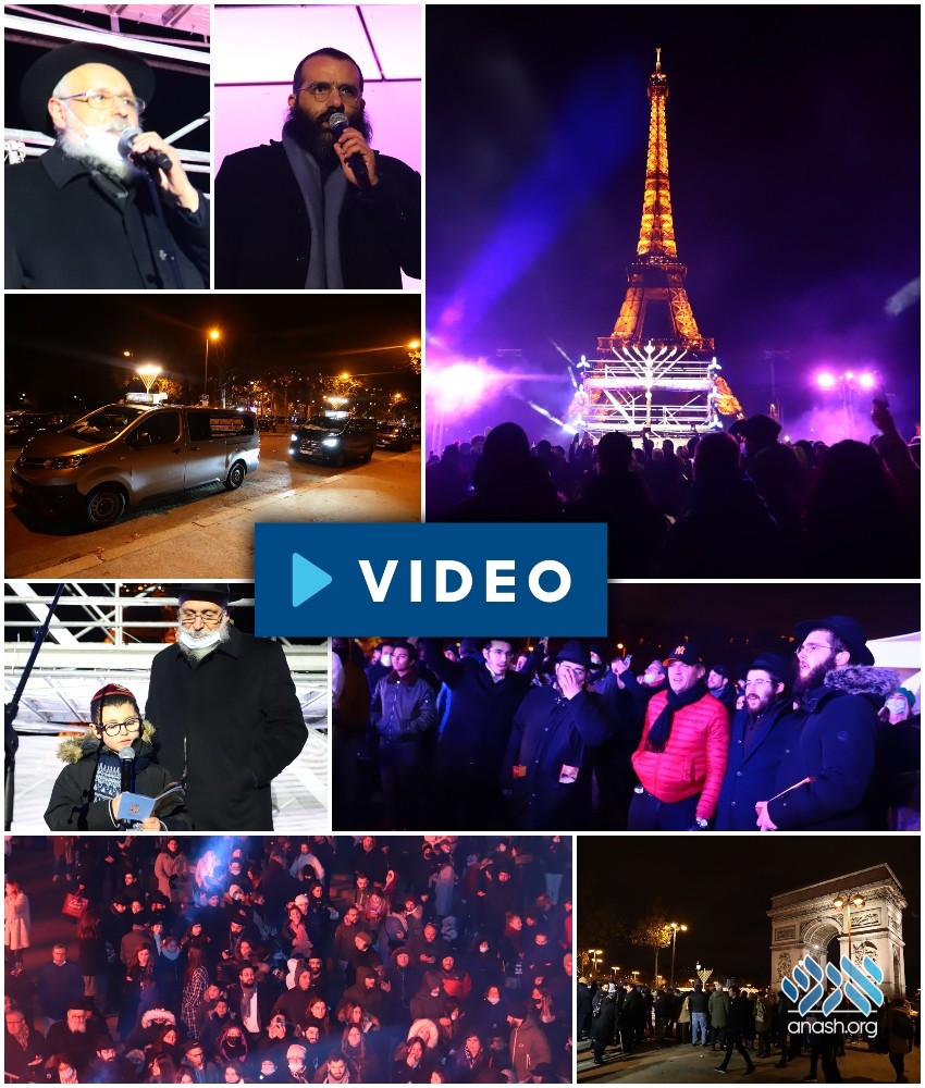 The giant menorah lighting was arranged by Head Shliach to Paris Rabbi Mendel Azimov, and the event was graced with the presence of the Chief Rabbi of Paris, an Mayor of Paris Anne Hidalgo, and other community leaders and dignitaries.