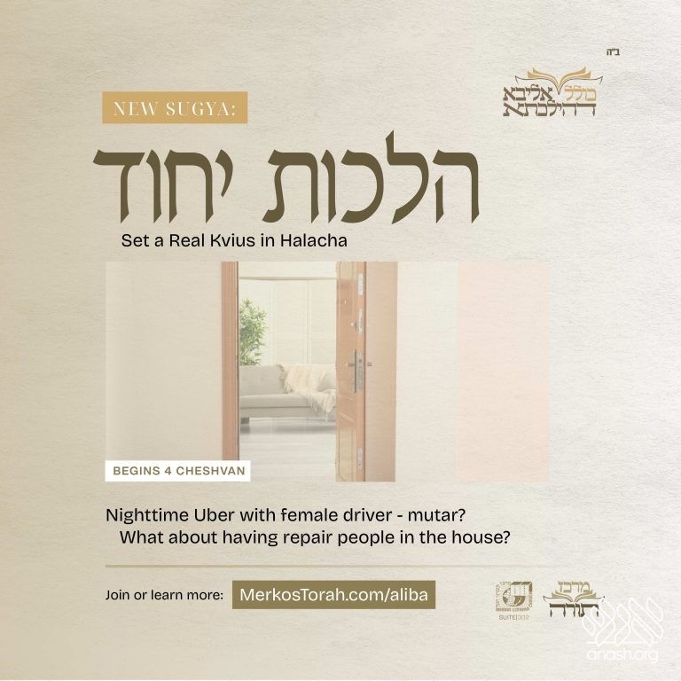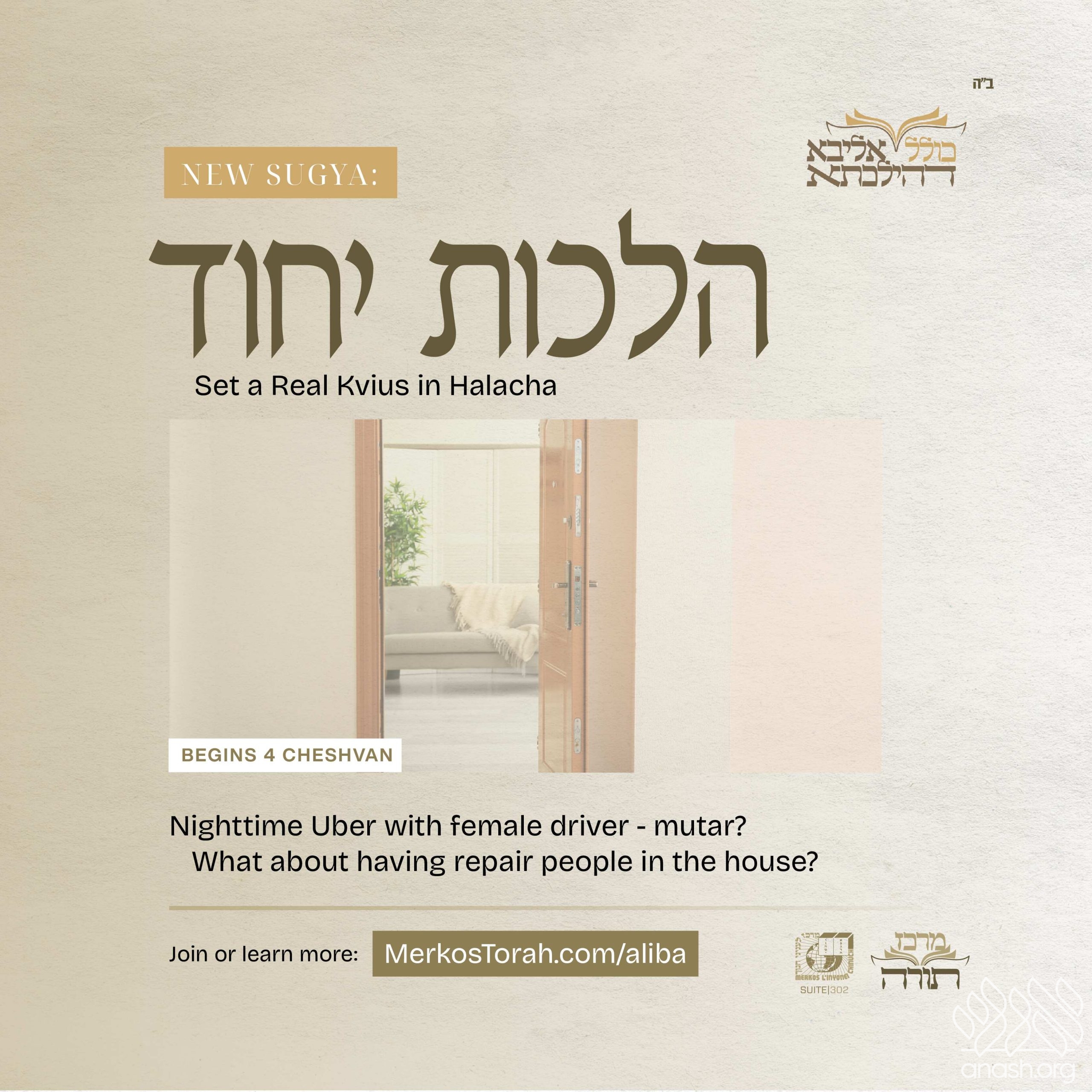 One of the most practical and widely relevant areas of halacha today: Hilchos Yichud, is the new sugya being learned in Kollel Aliba D’Hilchasa, starting on Sunday, 4 Cheshvan.