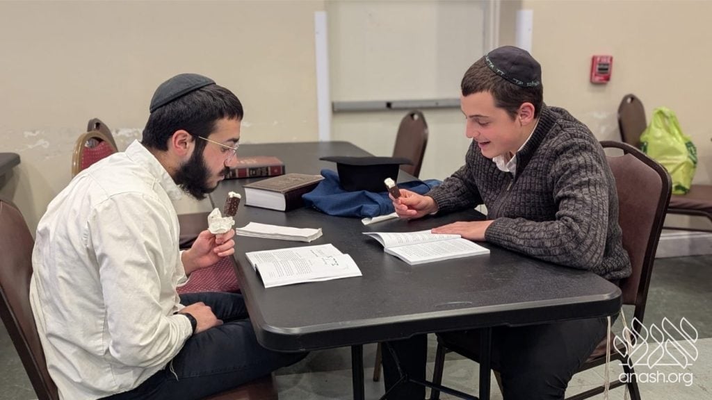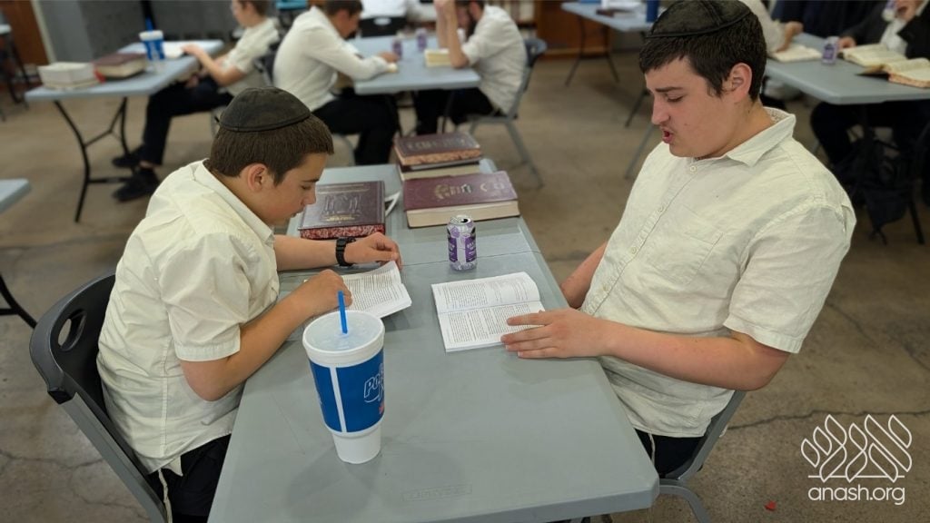 Each yeshiva hosted its own Seder Limmud, studying the comprehensive curriculum offered by the Moshiach Chidon. In the coming weeks, all the Bochurim will be tested on their learning, and those with the highest marks will compete in a live game show at the grand banquet.