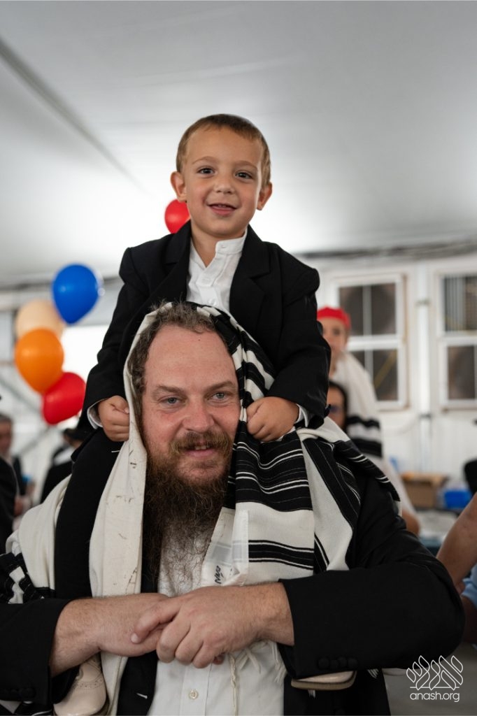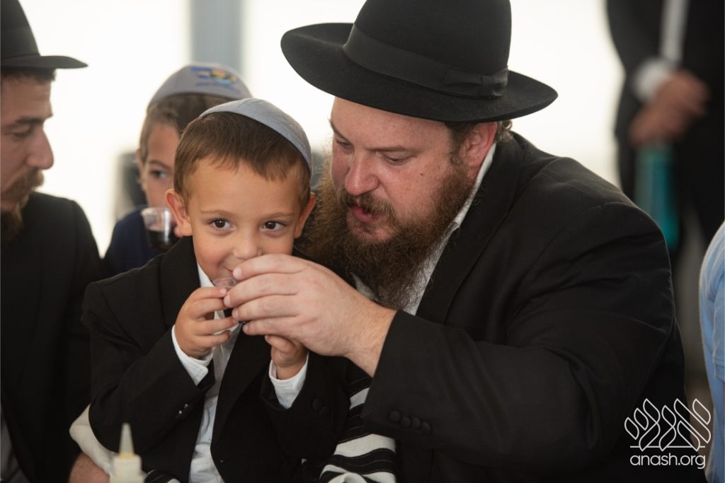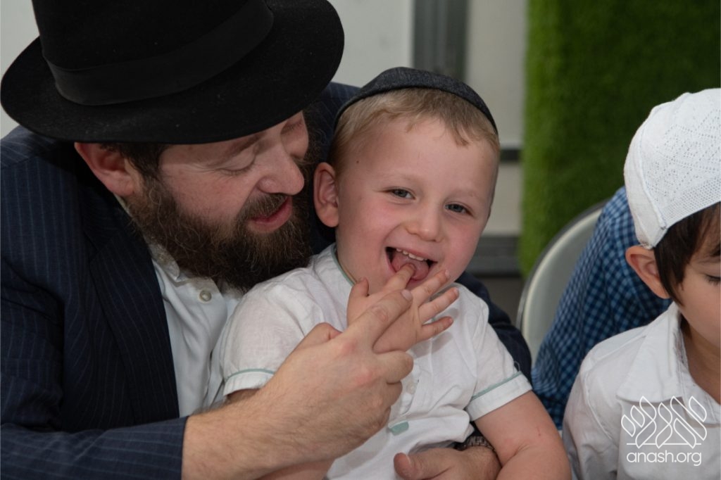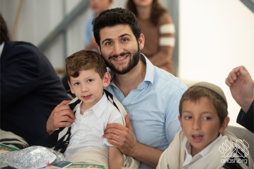 Leading the boys and their fathers in the series of arainfirnish minhagim was LEC’s longtime and beloved mechanech Rabbi Yaakov Roth, who himself had once taught many of the gathered parents—including Mrs. Wolff—and has led generations of students through the rituals. “He never misses a detail on frumkeit and chassidishkeit,” she says. “He does everything right, according to the hora’os of the Rebbe. I was so happy he was there to do it with my son.”