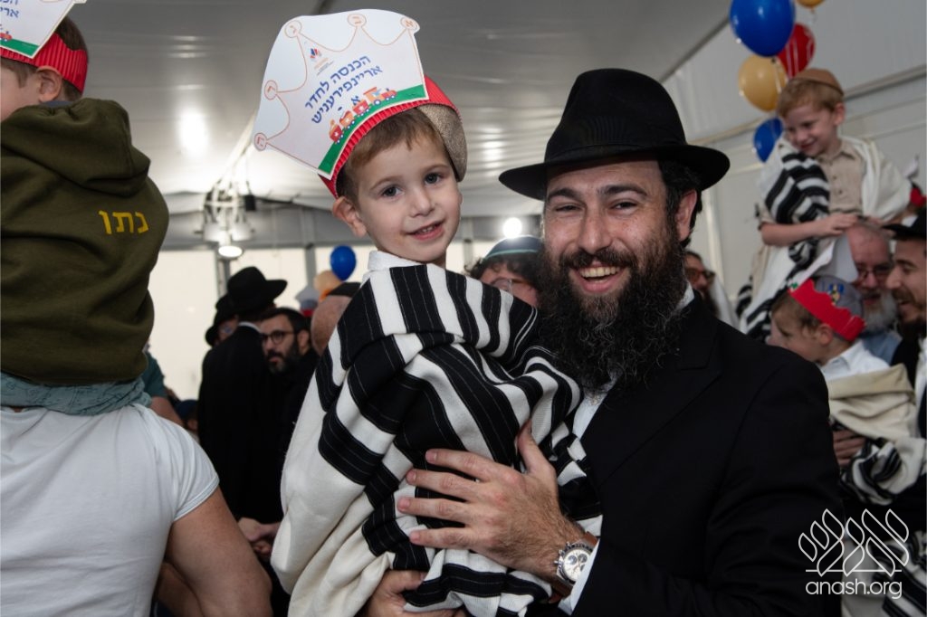 Candy rained down on the heads of the ecstatic boys from Malach Michoel. The event concluded with lebidige dancing as proud fathers lifted their sons on their shoulders. “This is their entry, the beginning of a lifelong journey of Yiddishe chinuch,” says Mrs. Rosenblum. “We all are proud to welcome them.”