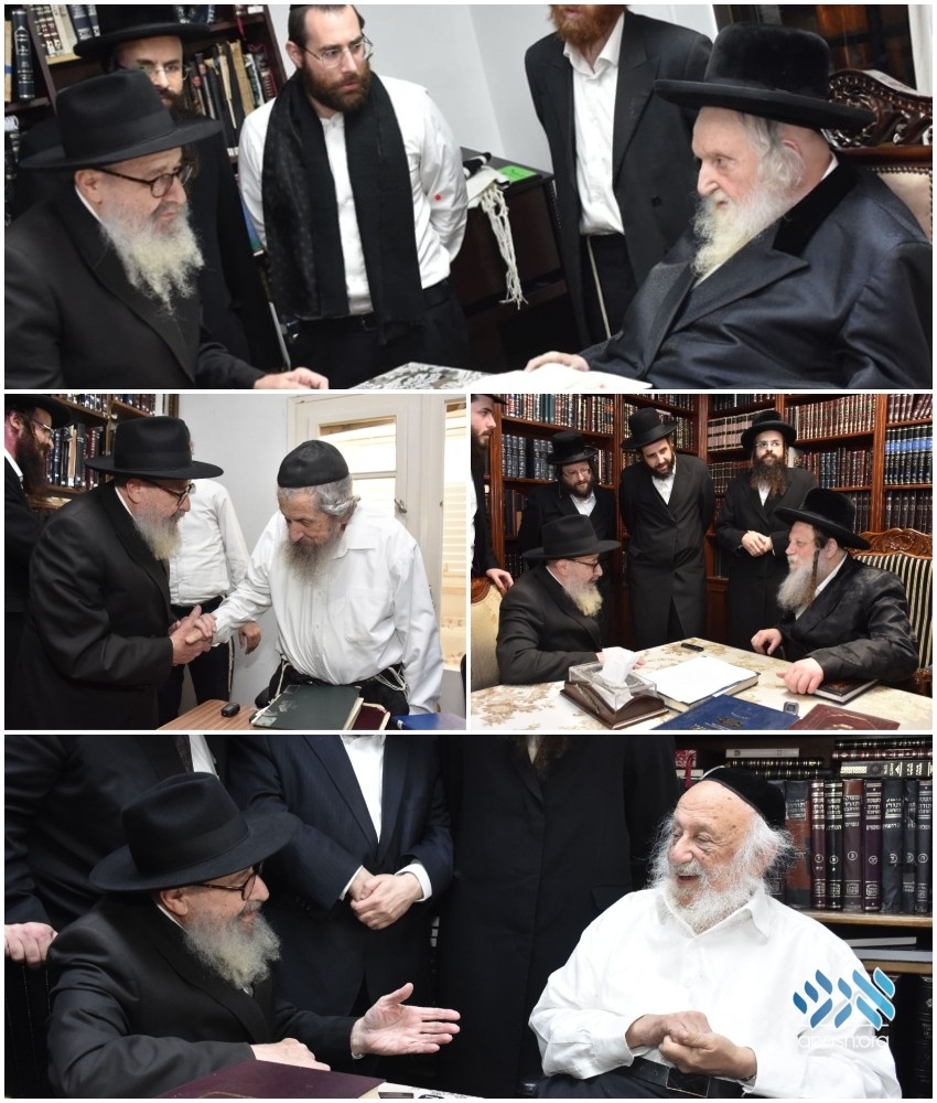 The next visit took place at the home of Harav Moshe Sternbuch, raavad of the Eida Hachareidis. Harav Sternbuch shared some of his memories of Rabbi Benzion Shemtov, who he knew from his years in London. The pair then held a lengthy Torah discussion about Yidden living in non-Jewish lands during the time of galus.