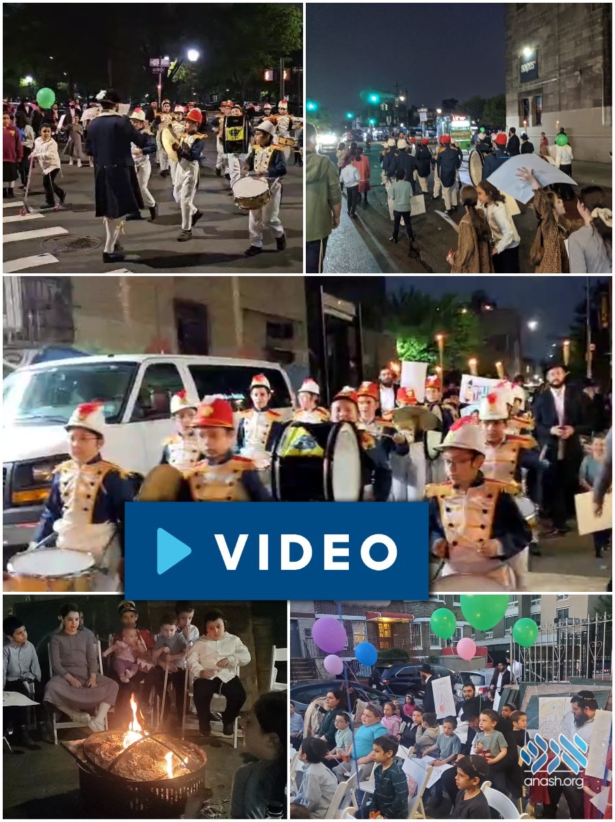 On the eve of Lag Baomer, families of the Anshei Moshe shul in North Crown Heights gathered for an exciting rally, followed by a bonfire and a lively parade complete with a marching band and torches lichvod Rashbi.