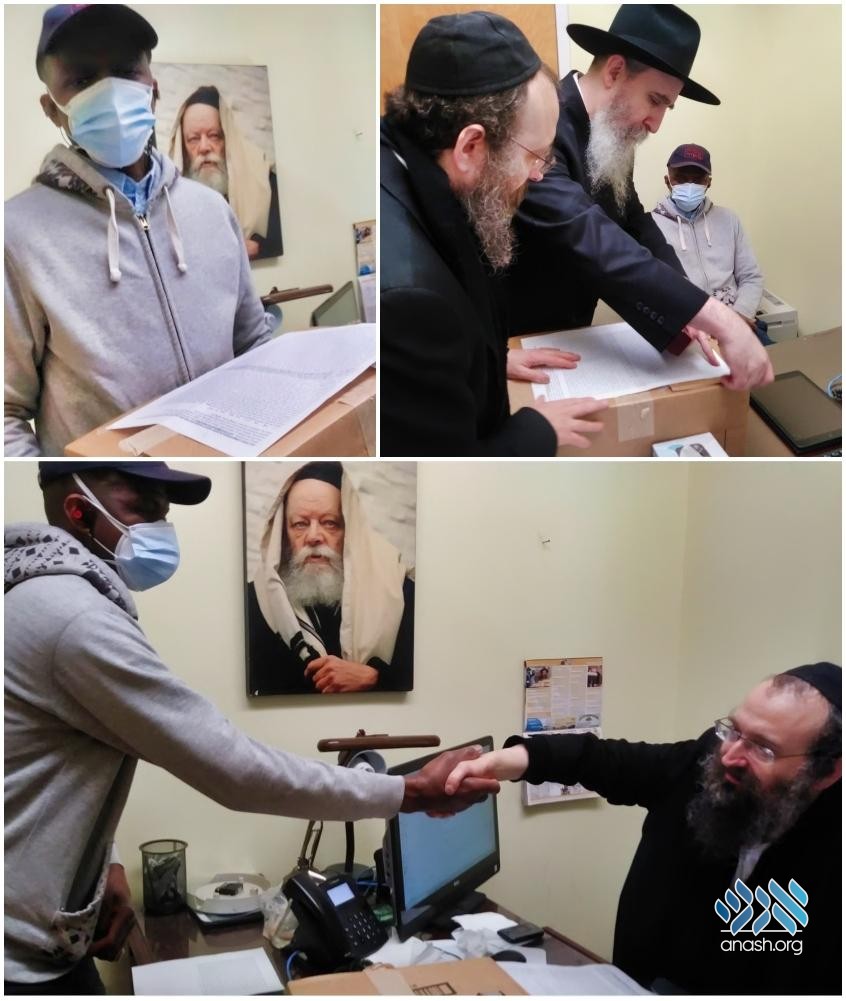 The faithful Mikvah Meir attendant took a break from his job on Friday morning to head to the nearby Badatz offices and purchase the chometz of Crown Heights residents from Rabbi Yosef Braun.
