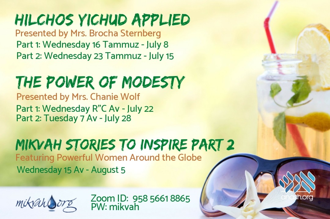 Following their successful weekly learn-at-home series during this corona quarantine period, Mikvah.org is announcing a new summer halacha series beginning tonight at 8:30 EDT.