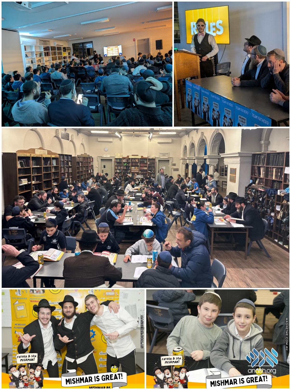 Melbourne’s first-ever Father & Son Mishmar, led by Mishmar Director JJ Hecht, was an overwhelming success as over 150 fathers and sons packed the YG Zal. After the learning, they enjoyed a fun game show, spark machines, and a live photo magnet station.