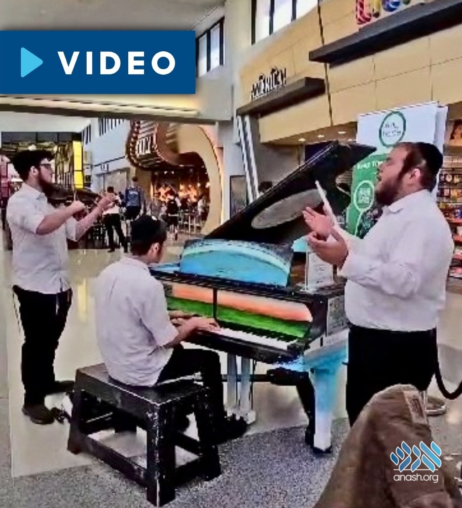 Two bochurim on their way to Yeshiva missed their flight by four minutes, and while waiting, they met singer Levy Falkowitz. They turned the disappointment into a beautiful musical performance.