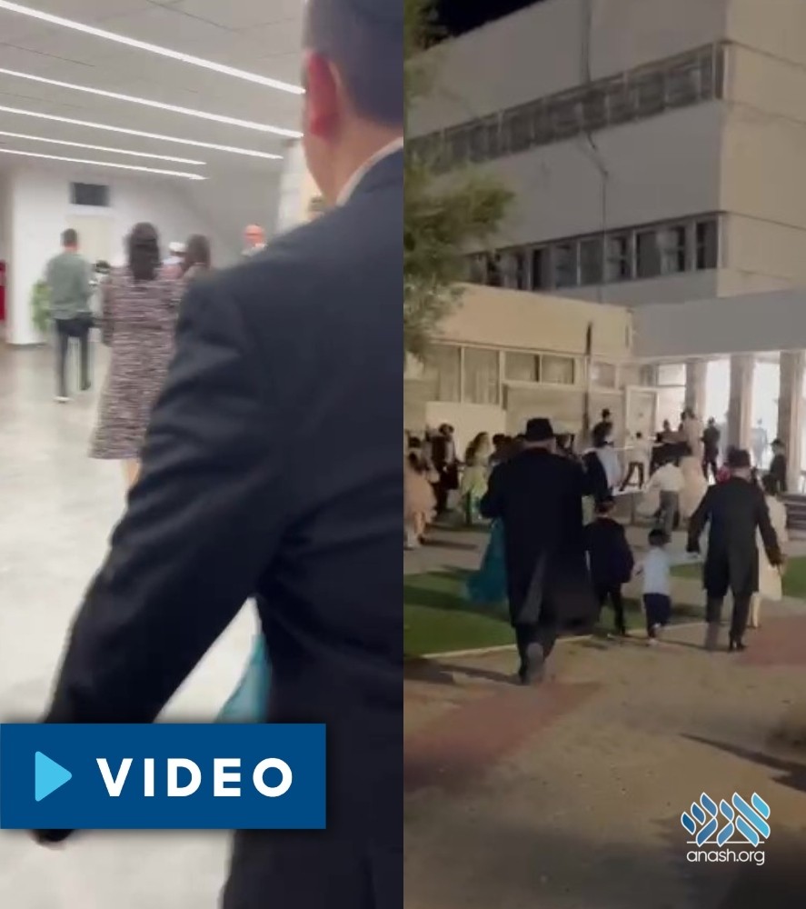 Watch: A red alert siren began wailing during a chuppah in Kfar Chabad, forcing the chosson, kallah, family, and guests to run for shelter.
