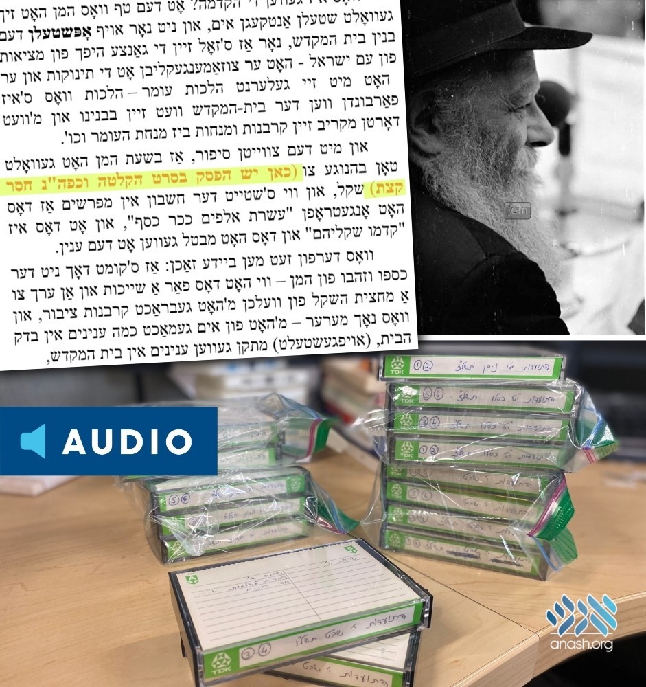 In recent weeks, staff at JEM received a call from Rabbi Chaim Shaul Brook of Lahak Hanachos. Efforts to transcribe the Farbrengen of Yud Shevat 5736 ran into an issue when it was discovered that the tape of the Farbrengen was missing a few words in the middle of a Sicha. Does JEM have the missing tape?