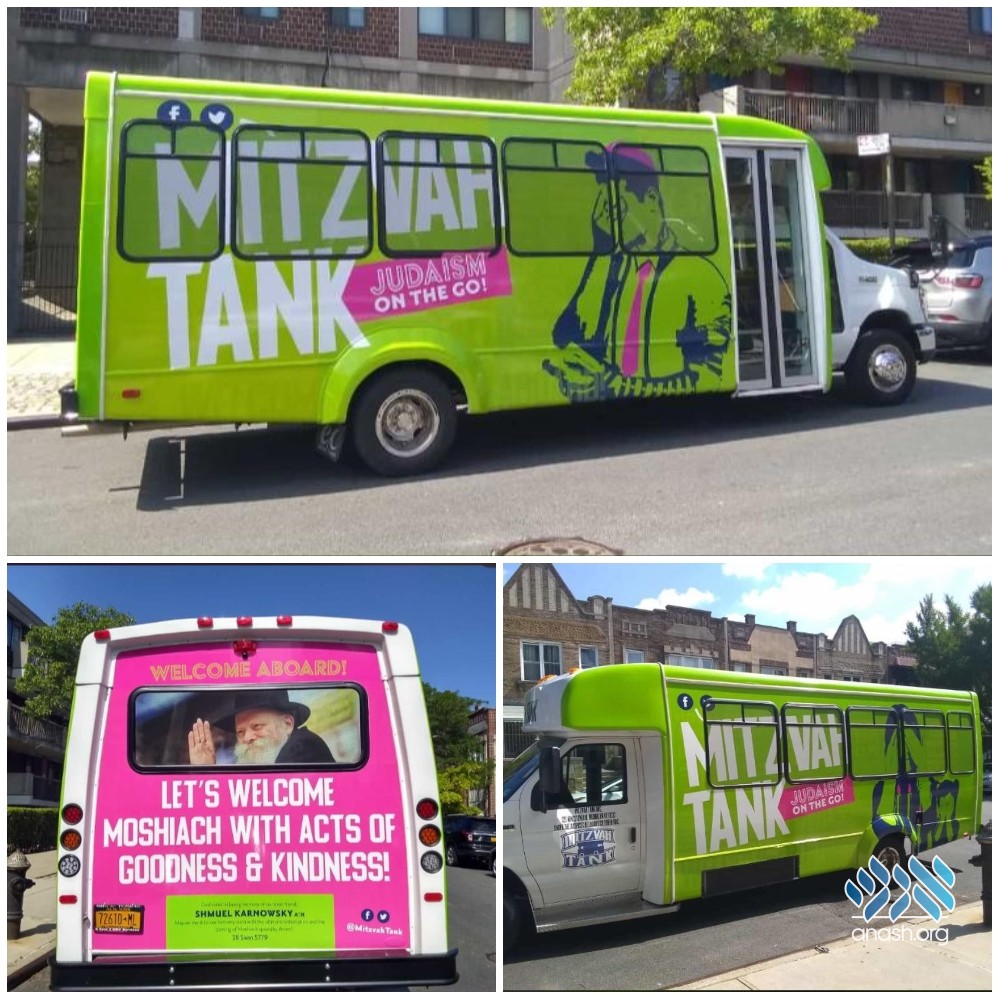 Now, around the time of Shmuel’s first yahrzeit, the tank is finally ready to be put to use. In the days after Gimmel Tammuz, the new tank, brightly decorated with mivtzoim scenes, was seen parked on the Crown Heights streets.