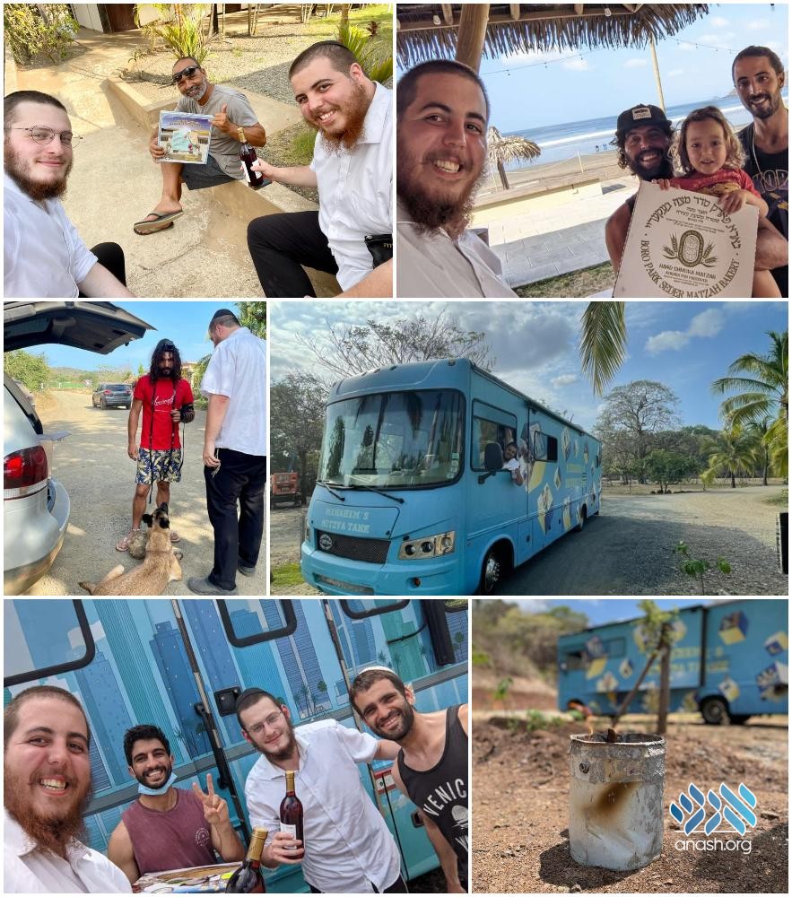 Bochurim Ber Chaim Arcusin and Mendi Lapidus loaded up a Mitzvah Tank with Pesach supplies and headed over to the Panamanian beach town of Playa Venao to bring the Yom Tov to the Israeli community there.