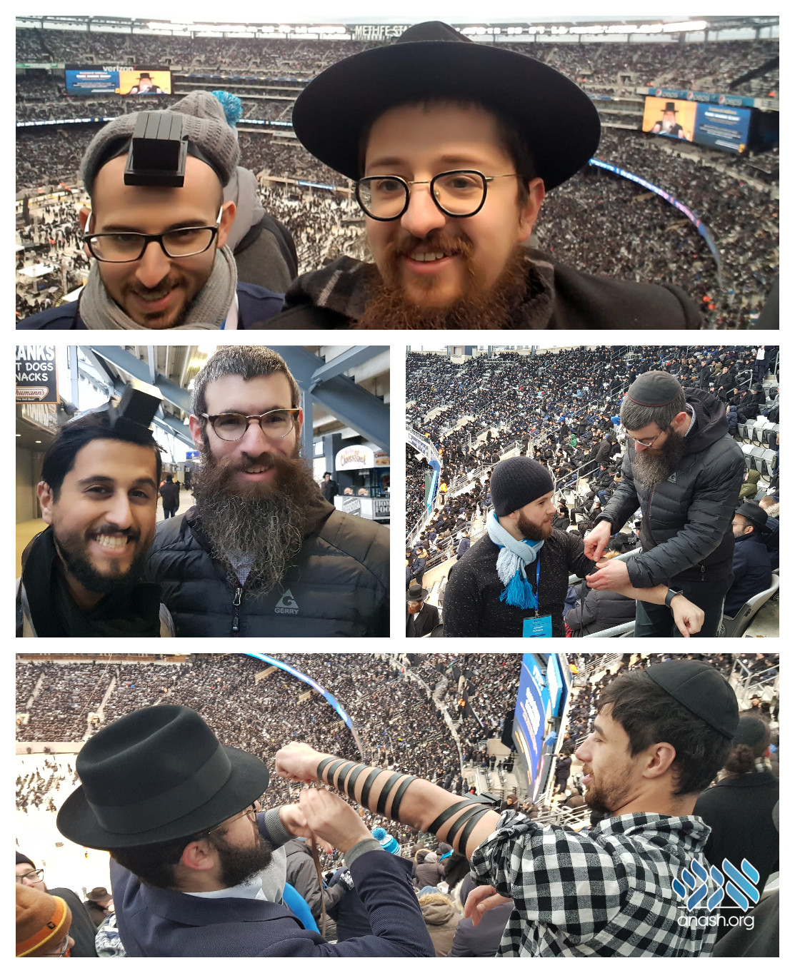Seen at the Siyum: As tens of thousands of Yidden celebrated the 13th Siyum of Daf Yomi, a few Lubavitchers didn’t forget to bring their tefillin.