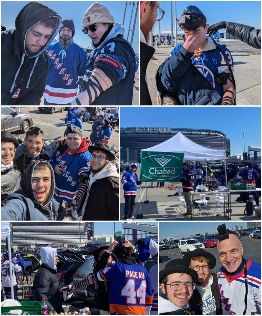 When the famous football stadium hosted two New York hockey teams, Chabad of the Meadowlands was on scene pre-game with mivtza Tefillin, Neshek, kosher food, and camaraderie.