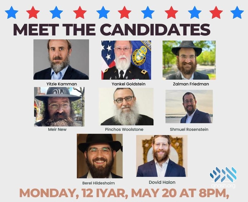 The forum will be chaired by Chaim Perl. The order of the candidates will be chosen by lottery. Each candidate will be given 5 minutes to speak. Then the moderator will present questions from the audience. The entire event will be live-streamed.