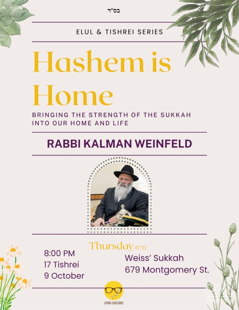 Sukkos Farbrengen with Rabbi Kalman Weinfeld & final Farbrengen at the end of Tishrei.
