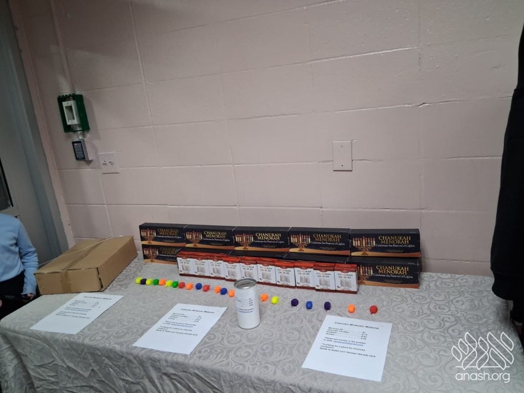Rabbi Gurkov farbrenged for many hours, engaging the crowd until three in the morning. The farbrengen also inspired many individuals to take on hachlotos tovos. A mivtzoim table offered attendees menorahs to take and give out, encouraging Anash to do mivtzoim throughout Chanukah in the community.
