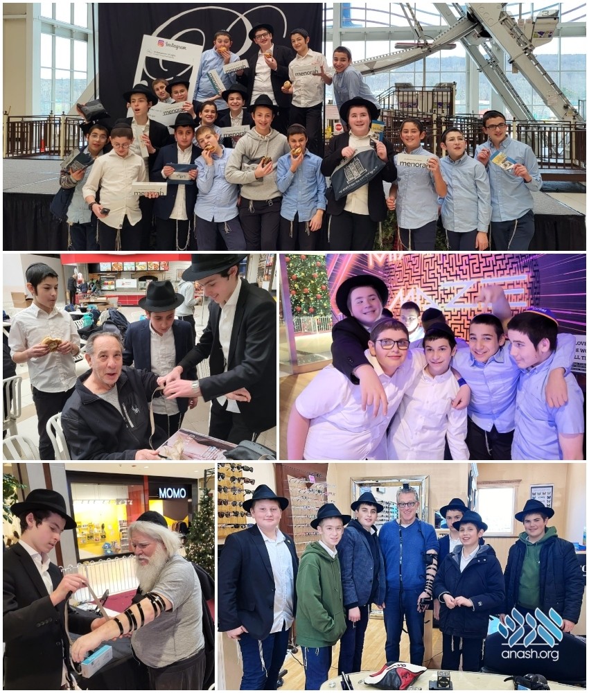 Students of the mechina division at Cheder Chabad Monsey, went on mivtzoim on Wednesday and Thursday of Chanuka, bringing the spirit of the holiday to old age homes and malls.