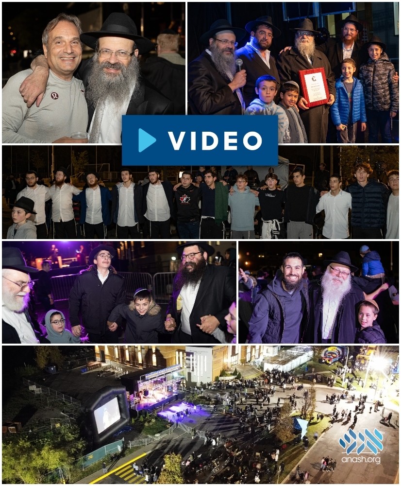 The Jewish community of Montreal joined a grand Simchas Beis Hashoeva and Mega Hakhel on Wednesday, the first day of Chol Hamoed Sukkos.