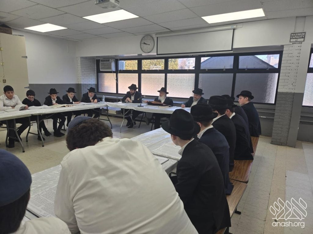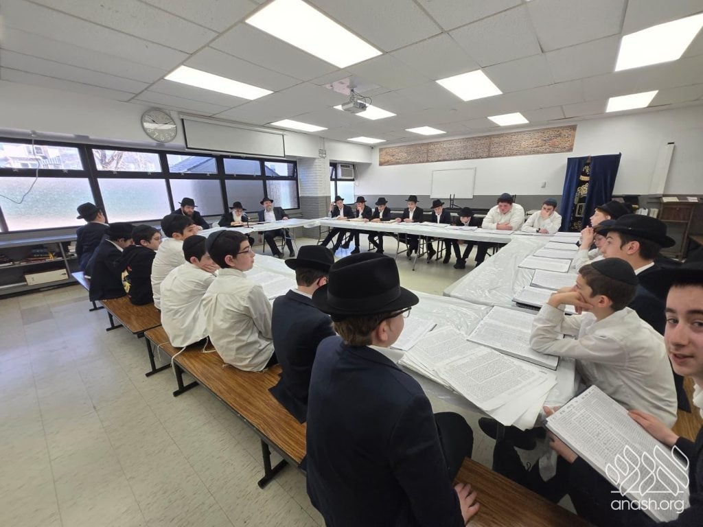 Talmidim of Kitah Zayin at Cheder Lubavitch of Monsey were tested on the entire perek Hameniach by Rabbi Sholom Spalter, Magid Shiur at Yeshivas Tomchei Temimim in Morristown, who was amazed by their knowledge.