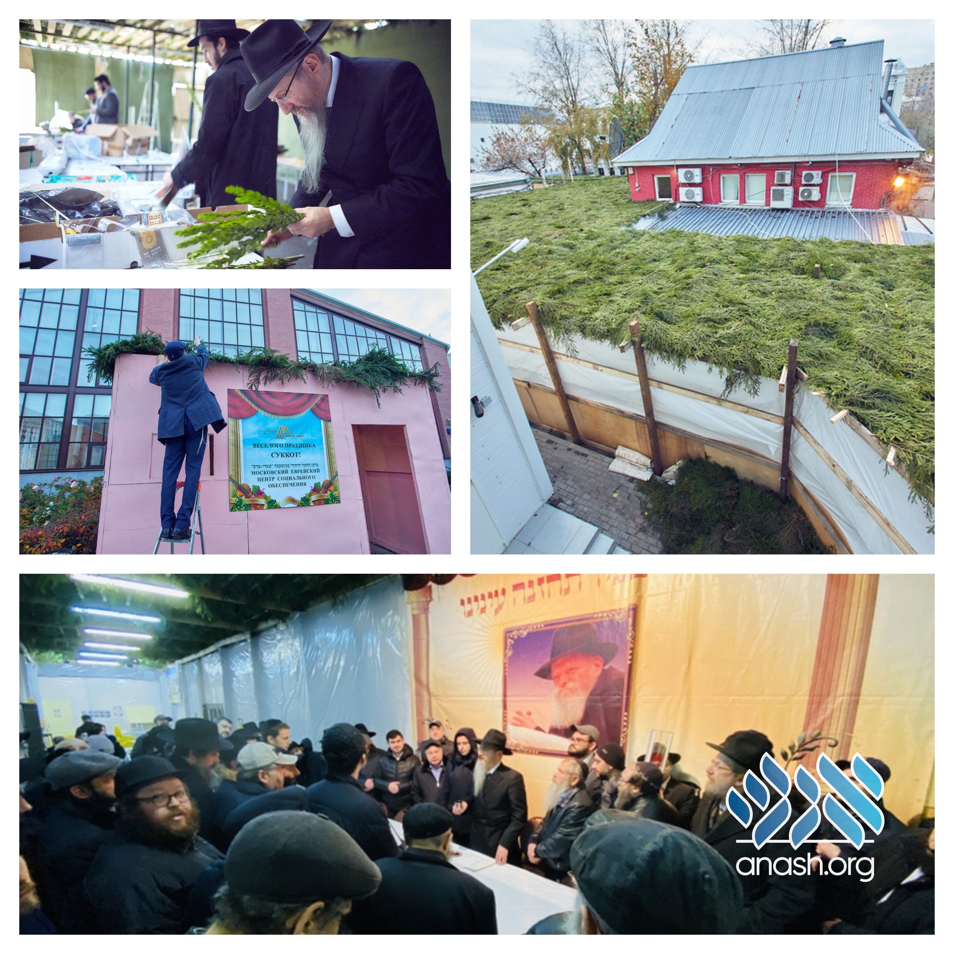 Members of Moscow Jewish community were seen preparing for the holiday in the grand sukka in the courtyard of the Marina Rosha Synagogue.