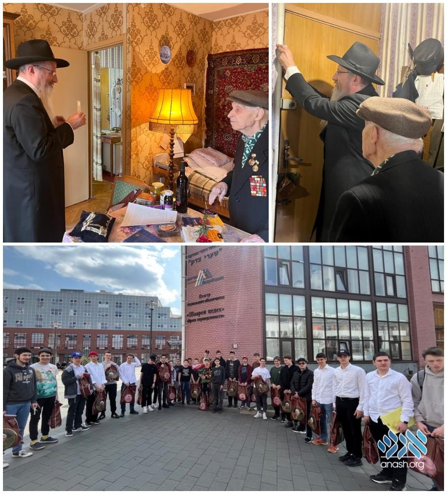 This year, to further enhance this project, students of the Mesivta were recruited, and sent all over Moscow to visit the Veterans, bearing gift baskets and greetings from the Chief Rabbi of Russia.