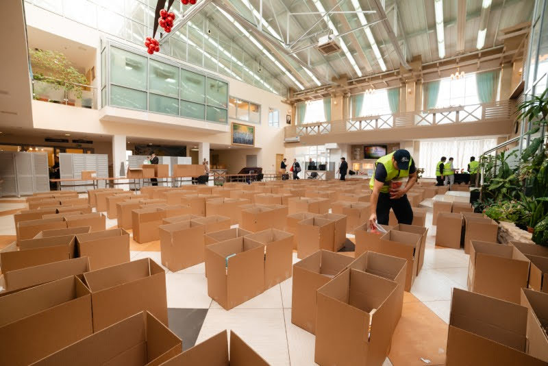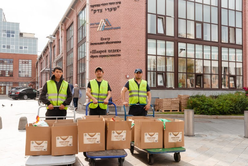 At the behest of Russia’s Chief Rabbi, Berel Lazar, the distribution of food baskets was increased this year, and the Rabbi personally came to oversee the large distribution that took place over several days at the Shaarei Tzedek Jewish Chesed Center. He praised the administrators and Gabbaim for their exemplary arrangement and the respectful and orderly distribution, while ensuring that each applicant receives full attention. Each application was handled immediately and all families received the food supplies needed for Yom Tov, fresh, kosher, and in abundance.