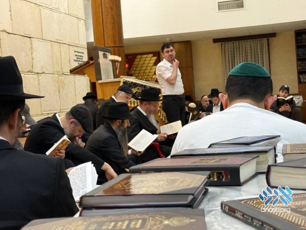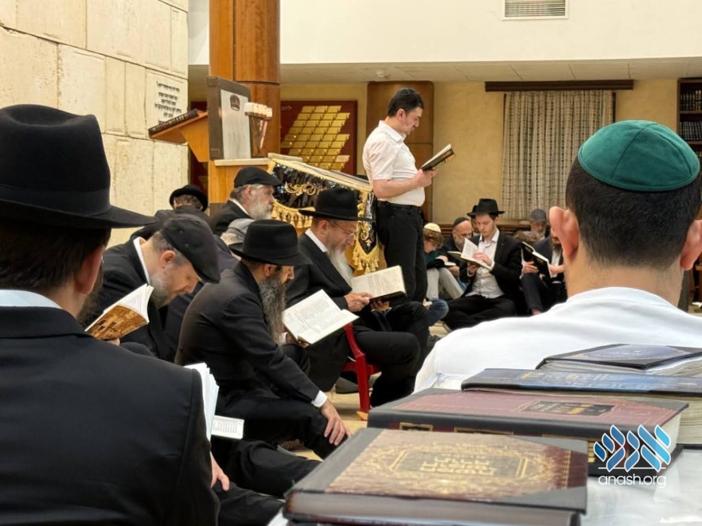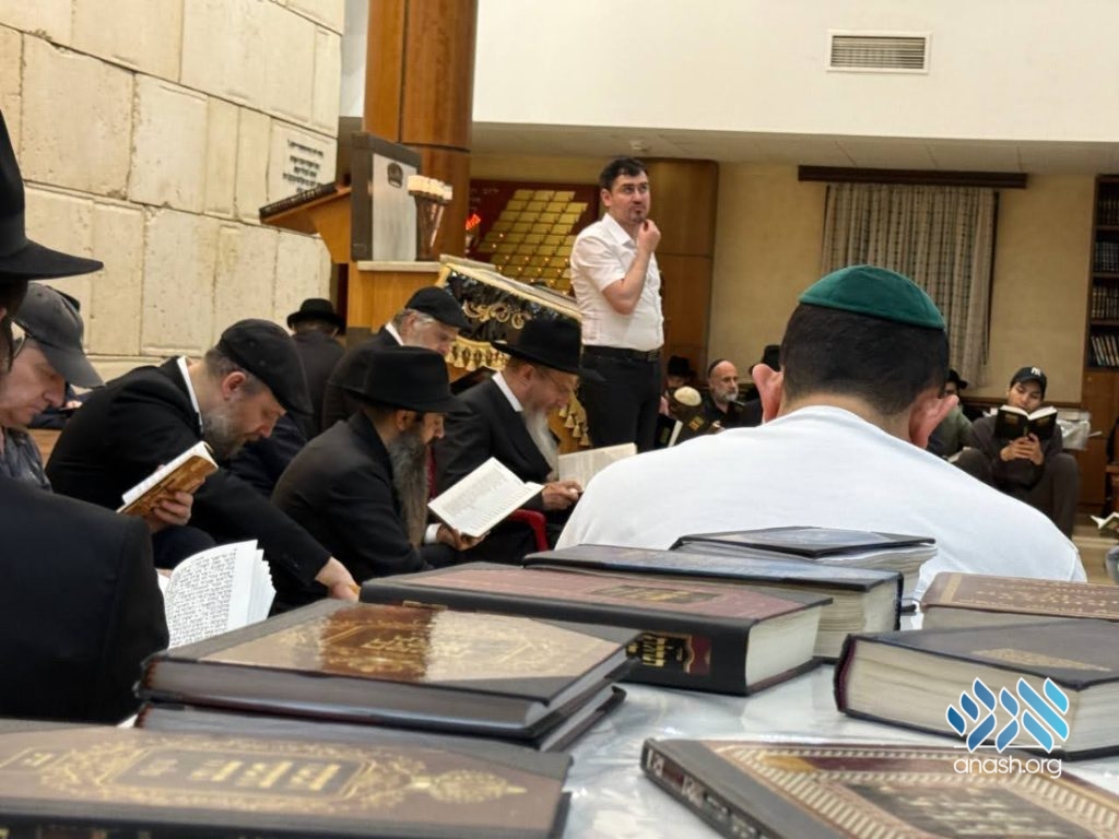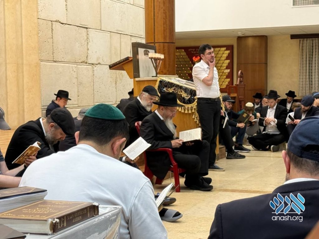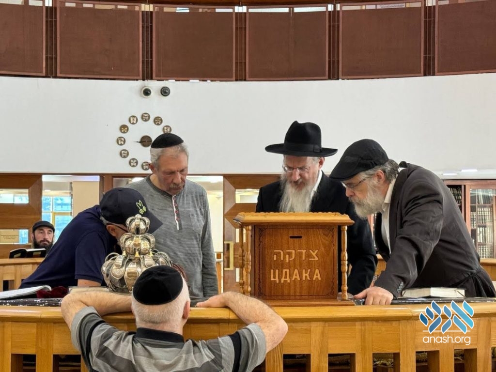 Shacharis on Sunday morning began mi’amud hashachar, with multiple minyonim held throughout the day. In keeping with the Rebbe’s directive — to transform days of pain into opportunities for action — the community was inspired to fulfill the age-old minhag Yisroel of increasing in tzedaka. As brought in Chazal, “Agra d’taanisa – tzedkasa,” the gabboim circulated among the crowd collecting for the local kupas tzedaka, supporting families in need, orphans, and the elderly. This initiative — which the Rebbe often stressed on fast days — was carried out with special hiddur and deep hiskashrus.