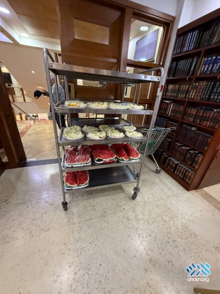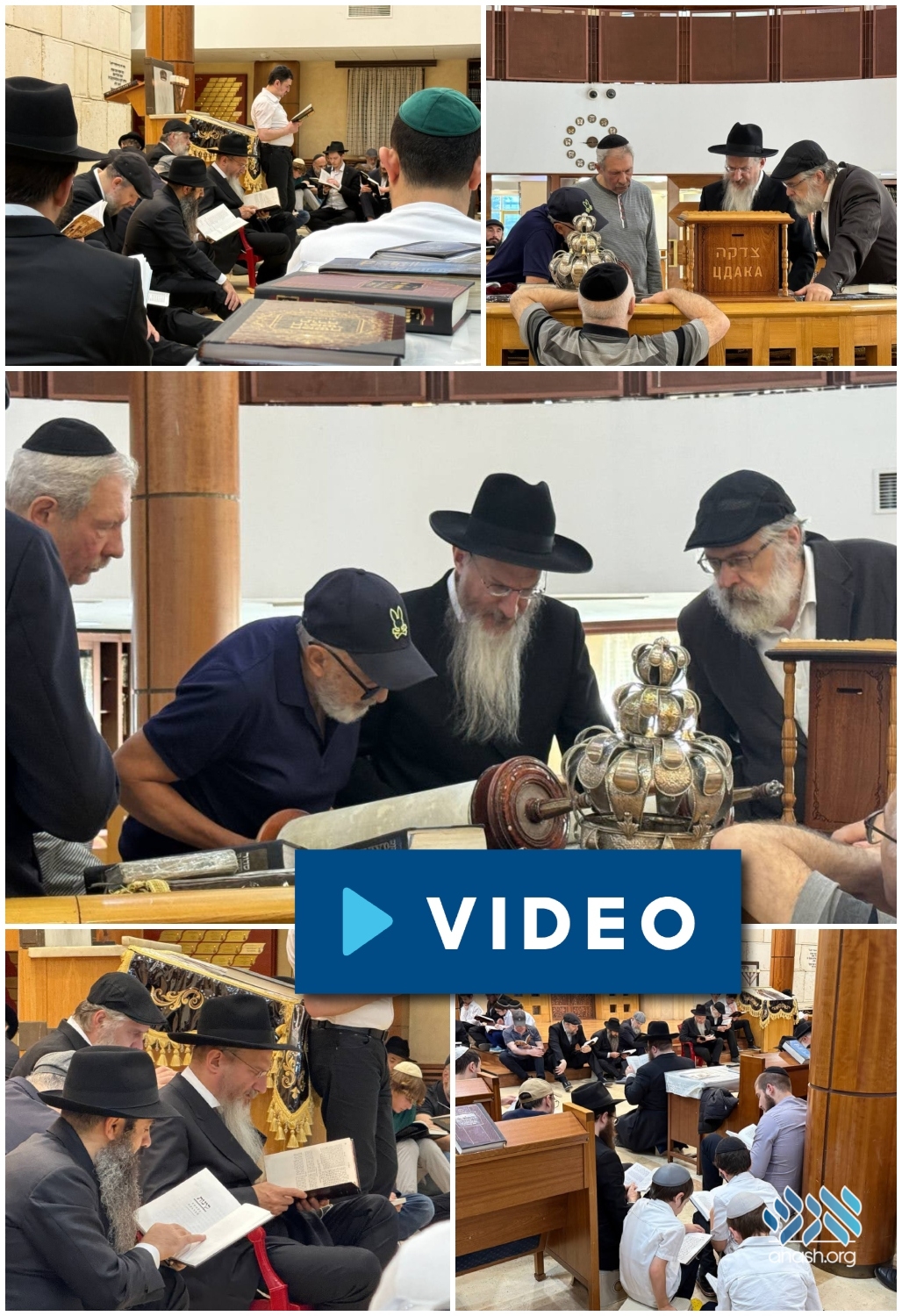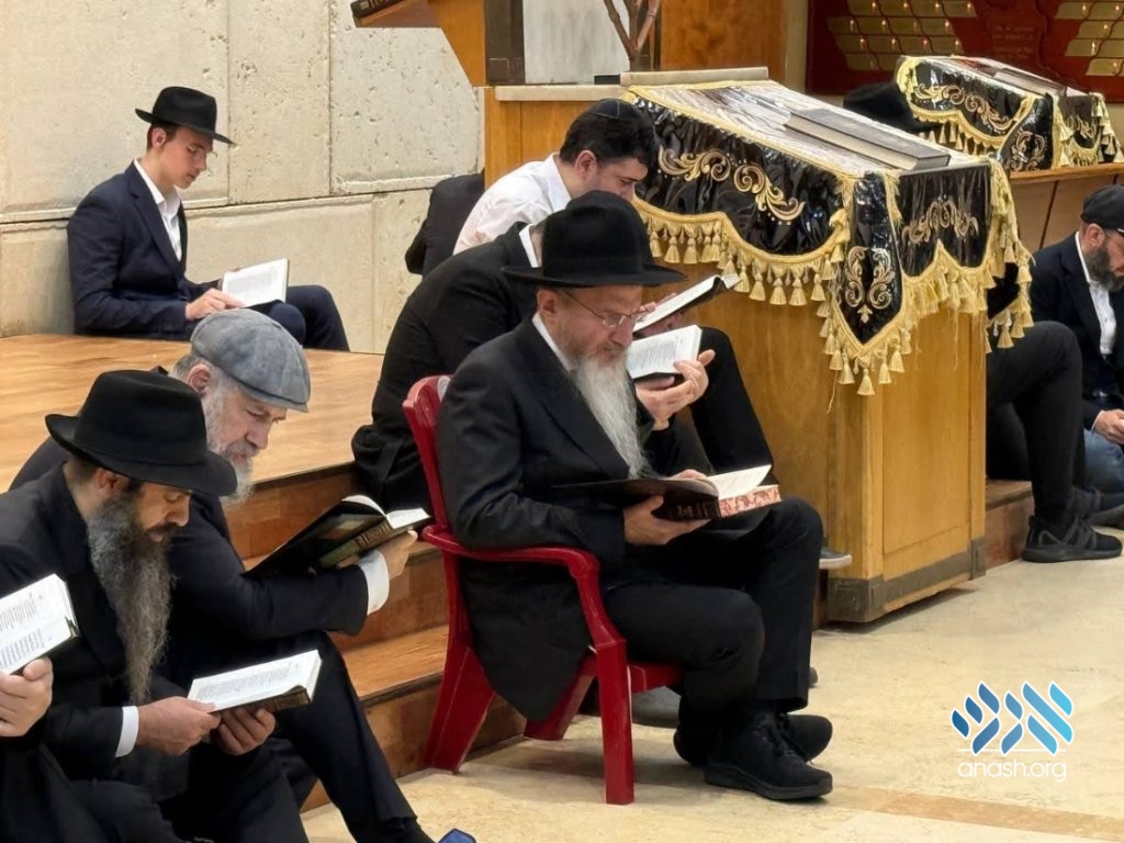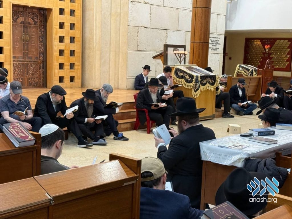 Shacharis on Sunday morning began mi’amud hashachar, with multiple minyonim held throughout the day. In keeping with the Rebbe’s directive — to transform days of pain into opportunities for action — the community was inspired to fulfill the age-old minhag Yisroel of increasing in tzedaka. As brought in Chazal, “Agra d’taanisa – tzedkasa,” the gabboim circulated among the crowd collecting for the local kupas tzedaka, supporting families in need, orphans, and the elderly. This initiative — which the Rebbe often stressed on fast days — was carried out with special hiddur and deep hiskashrus.