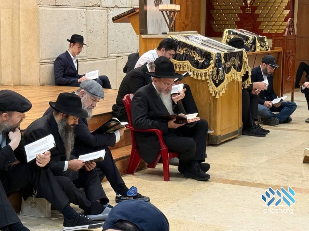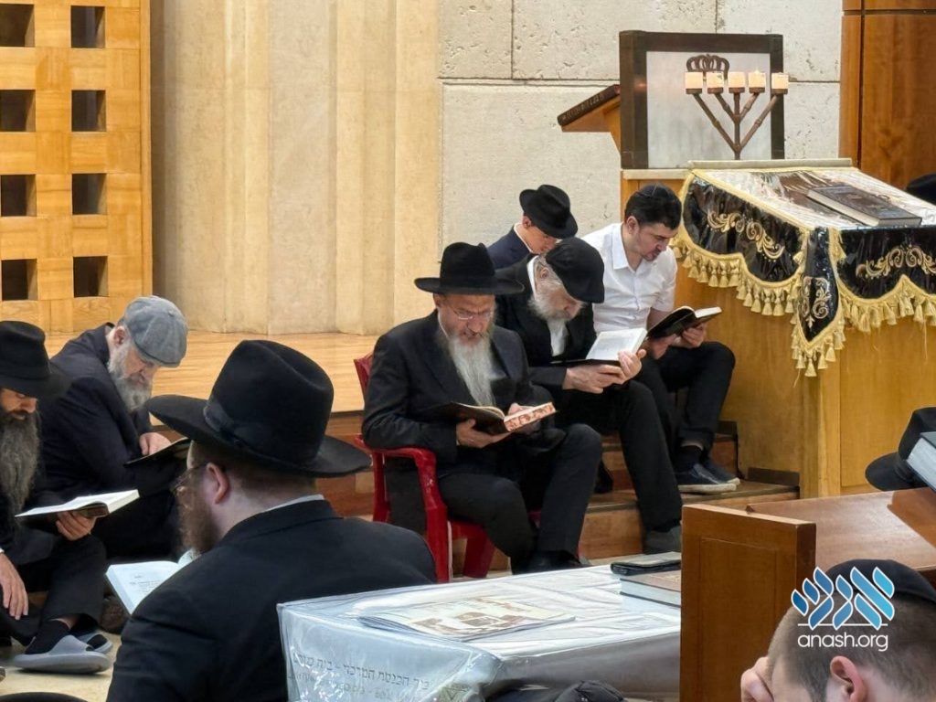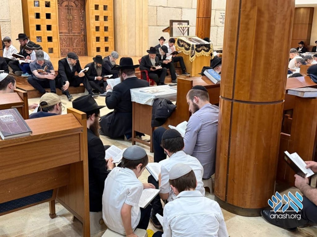 Since this year Tisha B’Av began on Motzoei Shabbos, a large crowd gathered right after Shabbos for Maariv and the reading of Megillas Eichah, which was recited by the Rabbi in the traditional nusach, handed down through the generations. The kinnus that followed were recited with bittul and heartfelt pleas for the coming of Moshiach Tzidkeinu, b’karov mamash.