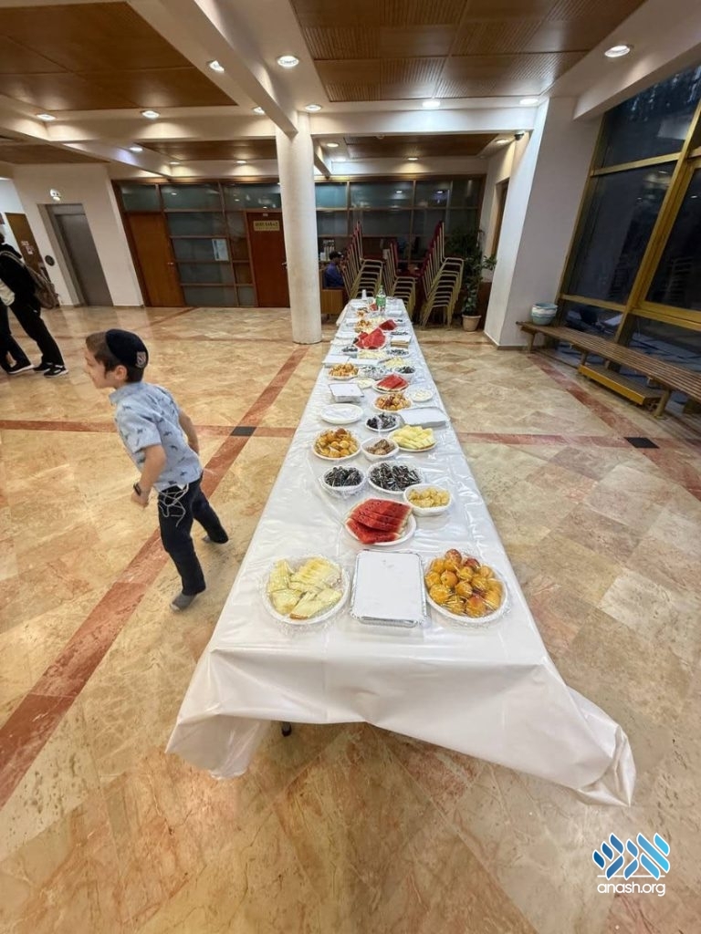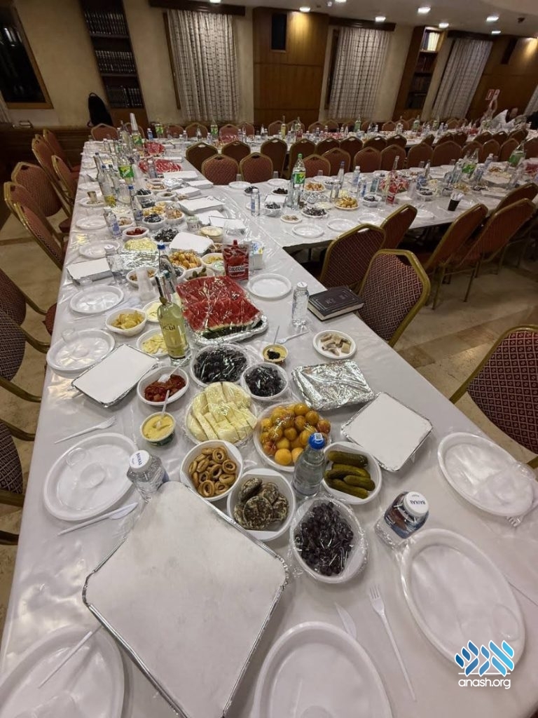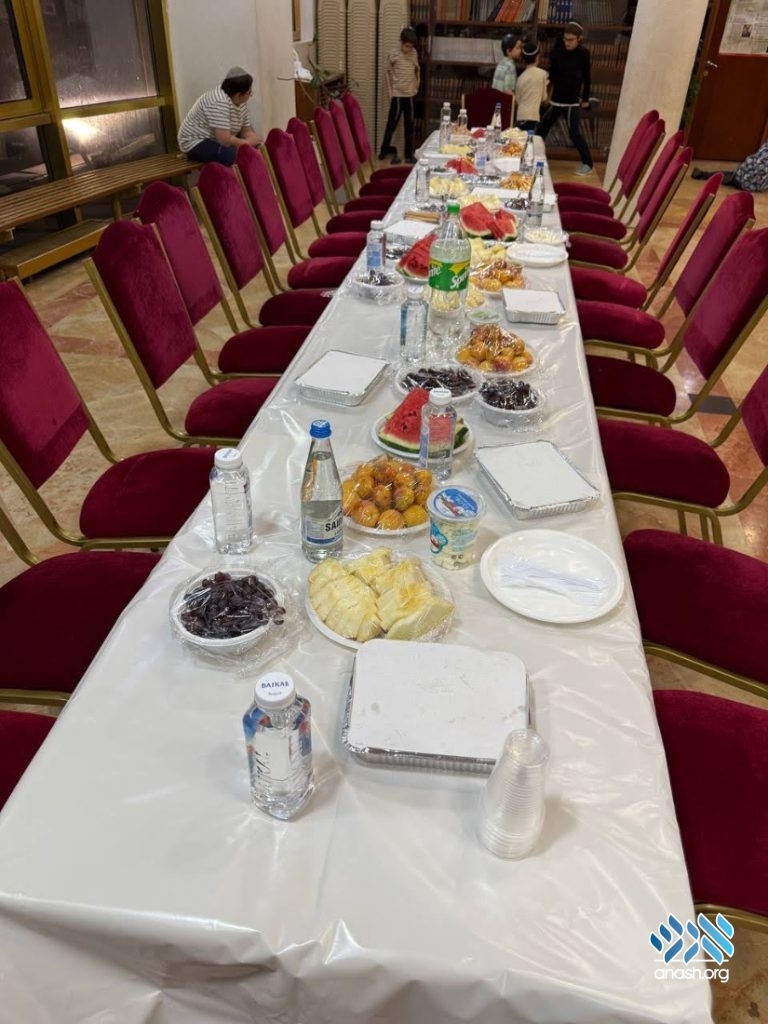 As the fast neared its conclusion, preparations were already underway for a nourishing and carefully arranged breakfast meal, with hot food lovingly prepared by women volunteers from the Marina Roscha community. The meals were served with warmth and care by the staff of “Grisha’s Tzimmer,” under the close supervision of the gabboim.