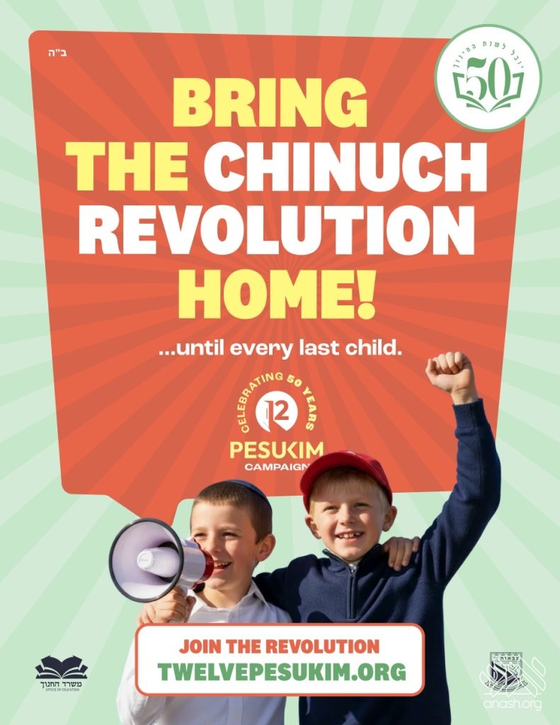 Marking 50 years of Mivtzah Chinuch, this partnership seeks to make the Rebbe’s Chinuch language, illuminated by the 12 Pesukim, a living part of every child’s experience. This milestone year calls for renewed focus and action, empowering educators, parents, and children to explore, internalize, and live the Rebbe’s Chinuch vision every day.