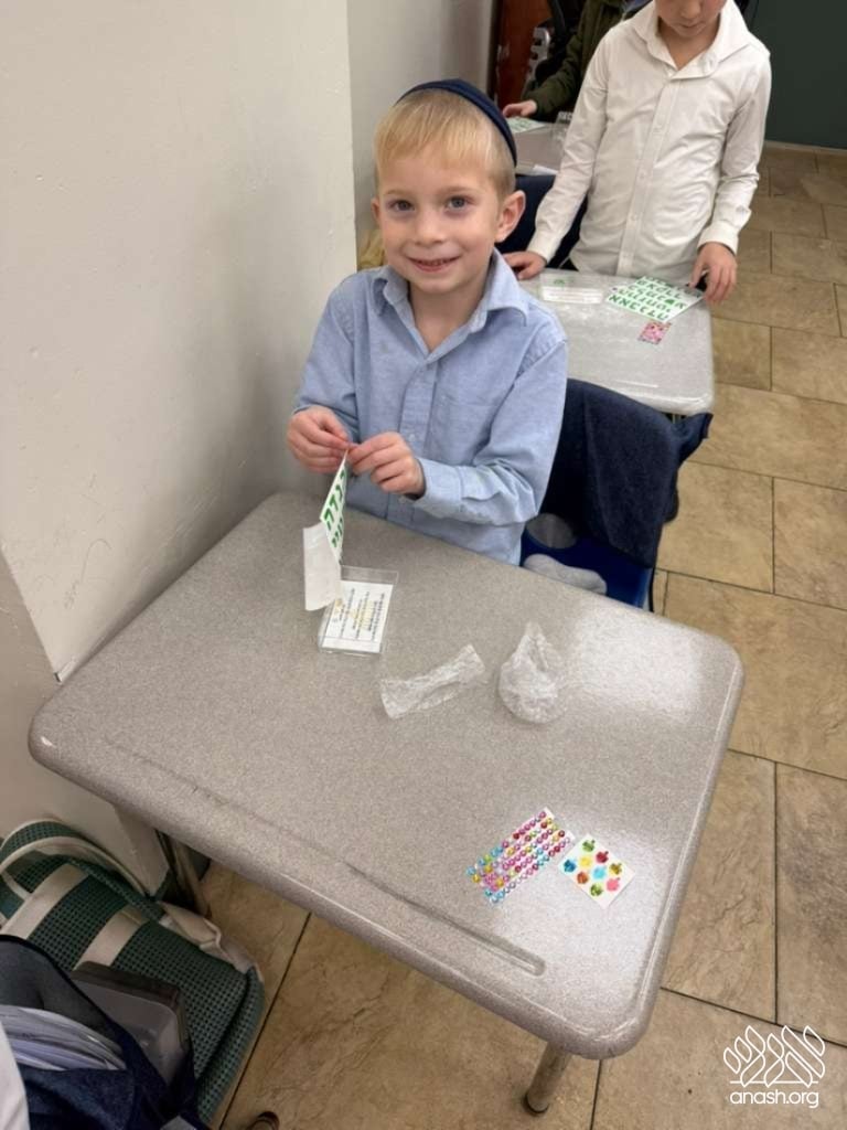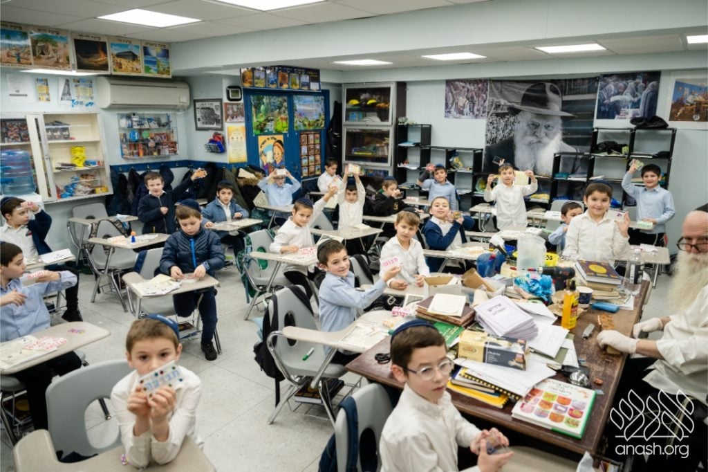 Mothers of Oholei Torah visited the Cheder classrooms to make personalized menorah matchboxes together with the young talmidim, adding a hands on start to the upcoming Yom Tov.