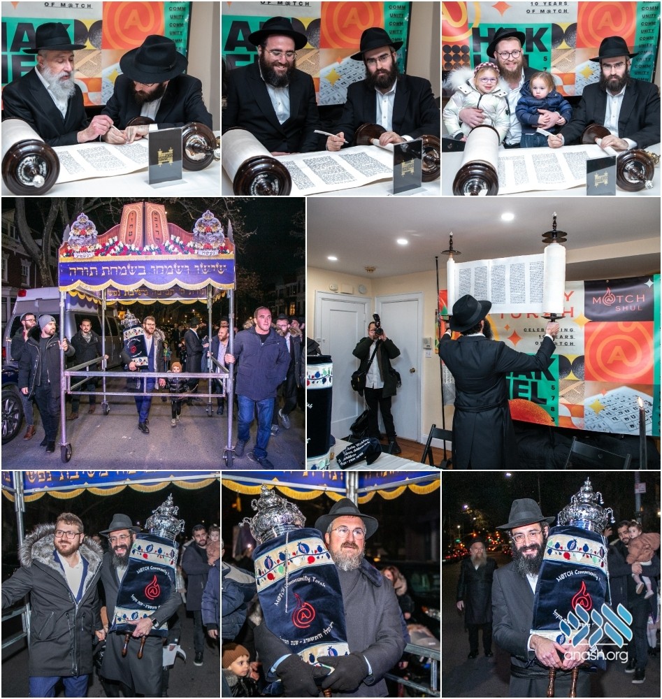 The M@tch Shul of Crown Heights celebrated 10 years since its founding with the dedication of a new Sefer Torah on Tuesday, Yud Tes Kislev.