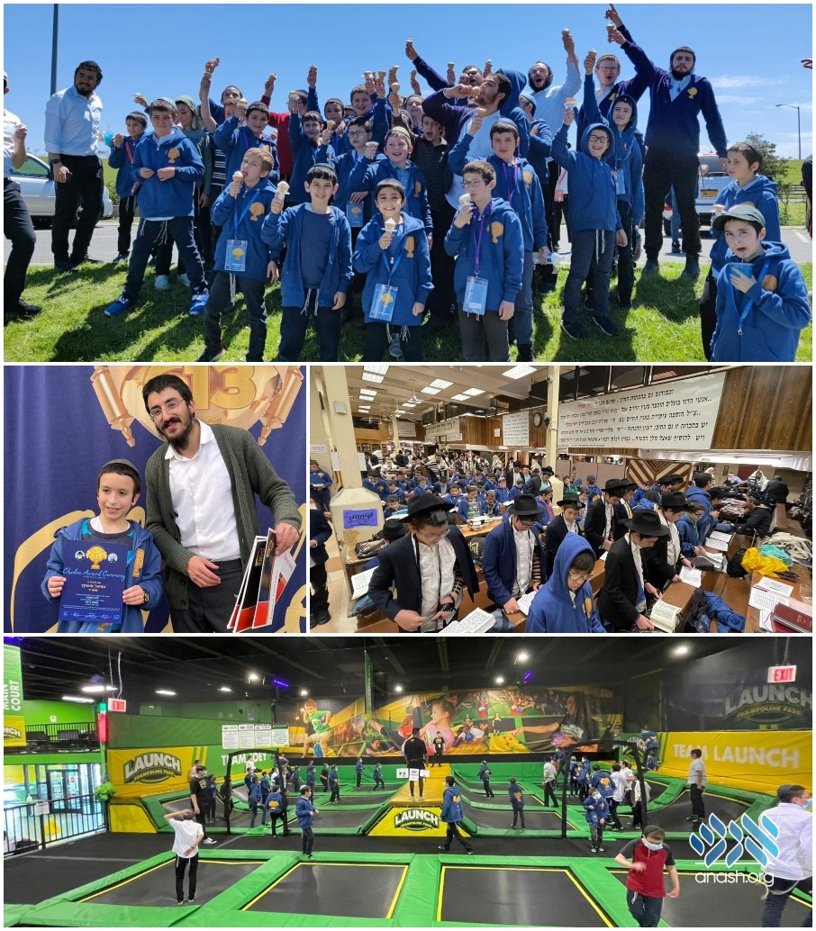 The next day the boys began with Chassidus at the JCM, and from there, they were off to the Ohel where they davened and shared a meaningful, uplifting experience. Moving right along, they were pleasantly surprised by an exclusively arranged Kosher Ice Cream truck, which provided just the right energy for the next leg of the journey; the trampoline park! Upon returning to Crown Heights, the boys were treated to a delicious barbecue and the long-awaited Chidon award ceremony!